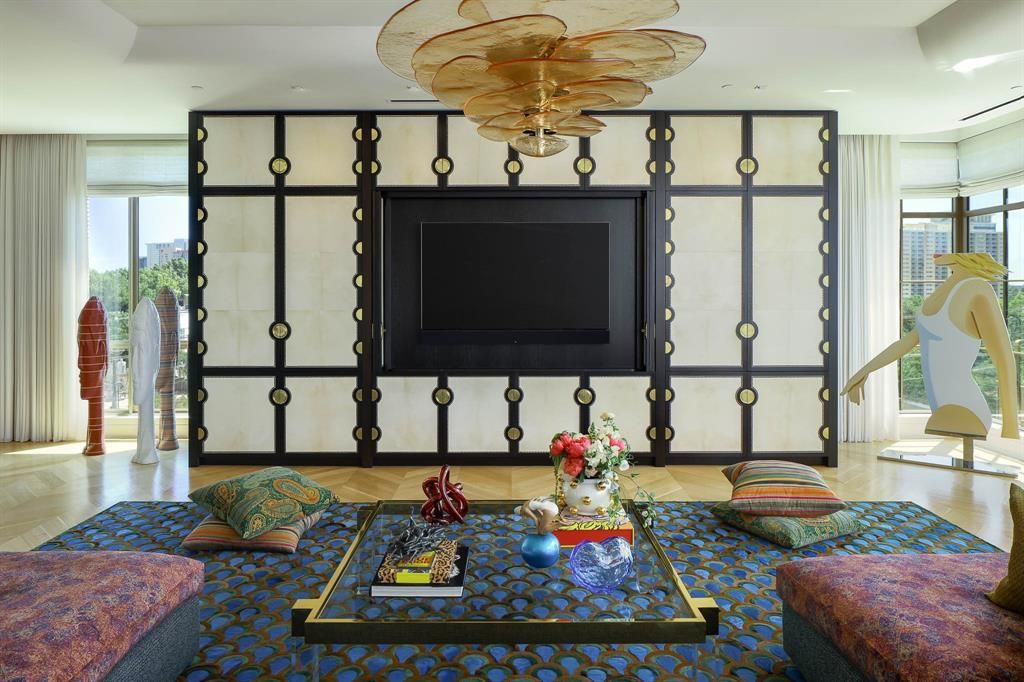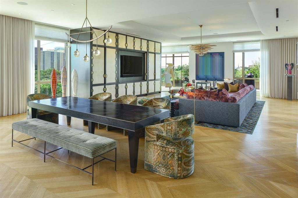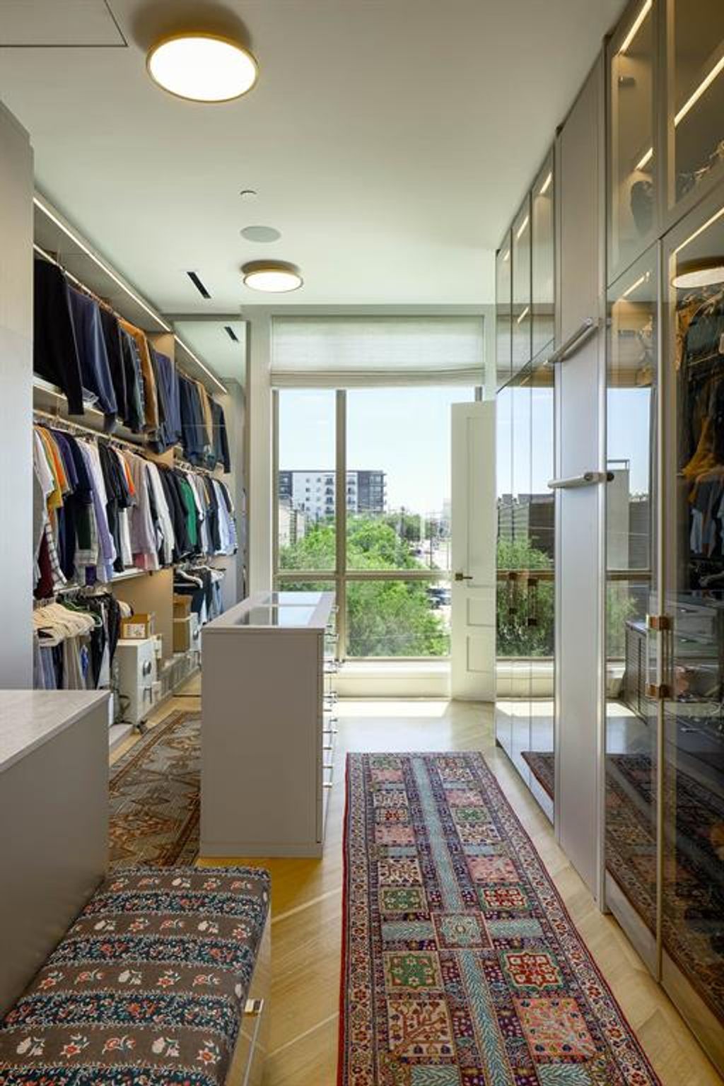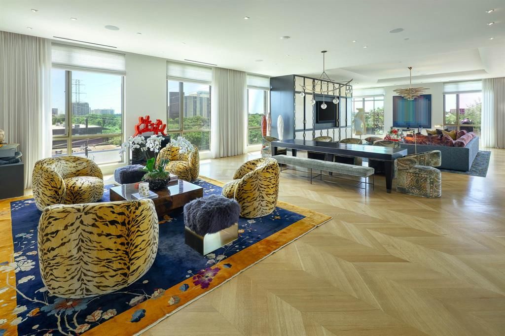 One of the most extraordinary condo residences in Dallas exists at the coveted Terminal at Katy Trail. This double unit was combined to meet the growing demand for larger units with curated interiors by award winning AD100 designer Fern Santini. Featuring nearly 5,400 square feet with 3 bedrooms, 3.5 baths, an exquisite media room, his and hers offices with south-facing balcony and an extended west facing balcony measuring over 800 square feet offering beautiful views of the Katy Trail and city skyline. Residence 301 enjoys stunning west, south and east exposure and is finished with elegant designer finishes from exquisite wallpaper to sculptural lighting, stone and tile accents and curated pieces beautifully scaled to each room. Smart home features installed by Haas Home Technologies with full home automation and extensive sound system with built in speakers indoors and out. Additional highlights include 11 foot ceilings, floor to ceiling Prestige 70 tinted windows with UV protection for art collectors, art lighting throughout, automated Moondust weave shades by Conrad that are Crestron controlled and handmade silk Always drapes by Holly Hunt. The Terminal at Katy Trail is home to the finest residences in Dallas - just 16 in all. The building is an architectural achievement, with signature arches inspired by the world's most beautiful train stations, incorporating solid masonry, shimmering glass and elegant bronze finishes. Home to Alive and Well luxury spa and pharmacy, Le Passage Restaurant, Rose Cafe, 02 Yoga and Pilates and upscale boutiques that offer the best of sophisticated urban living. Don't miss this masterpiece in one of Dallas' most coveted buildings.