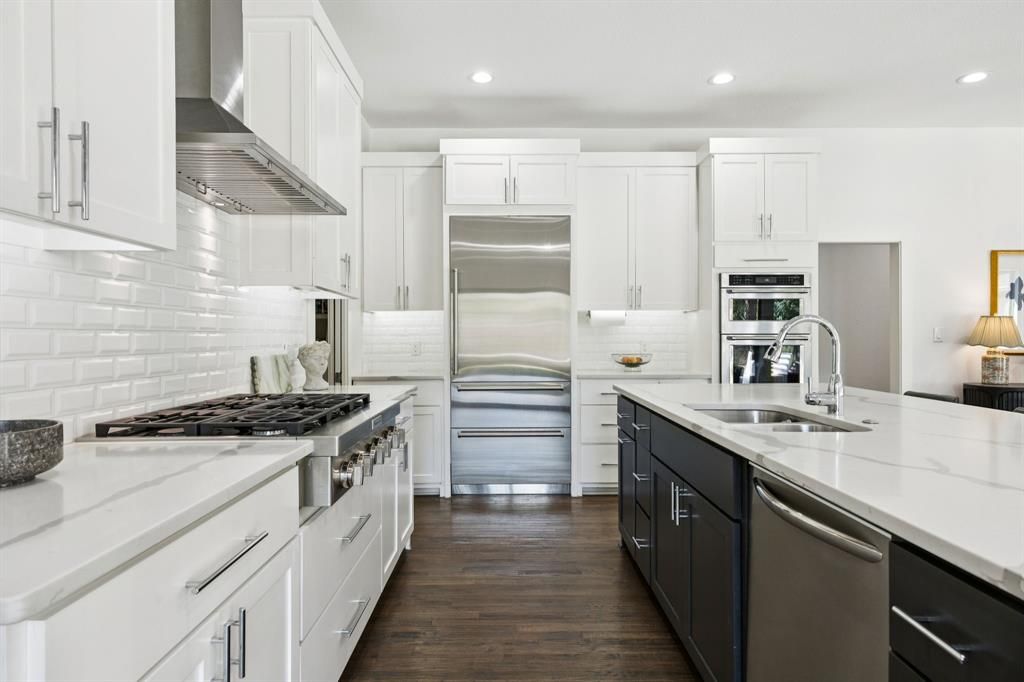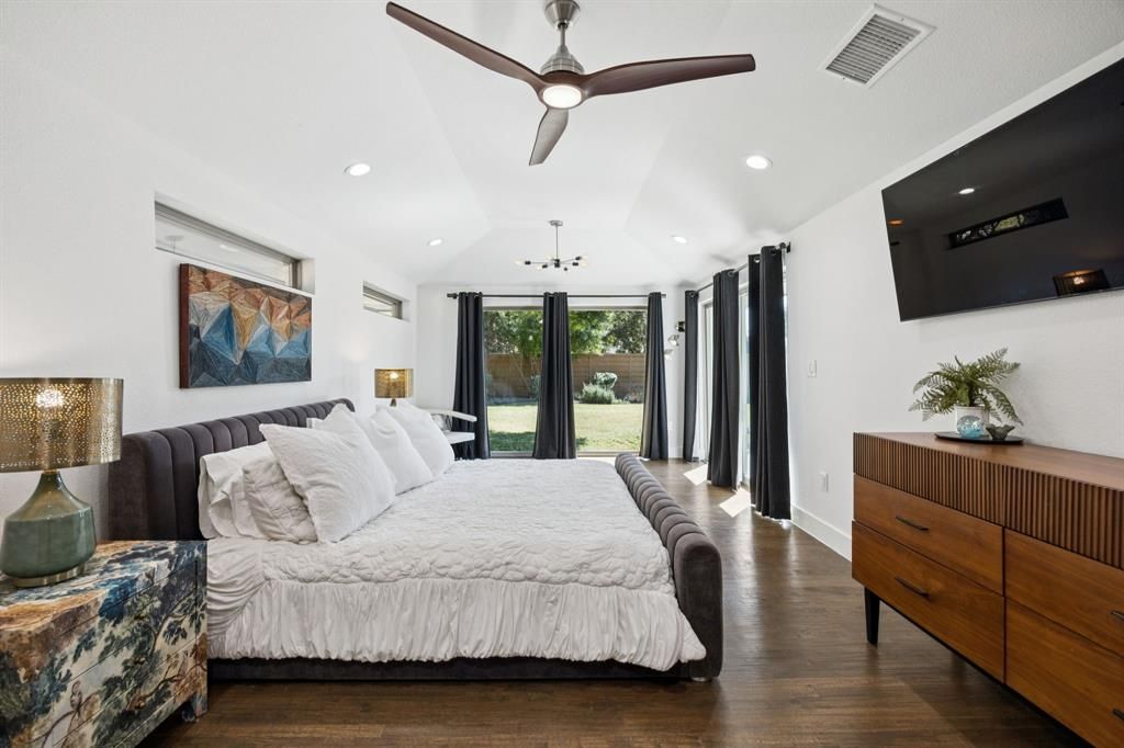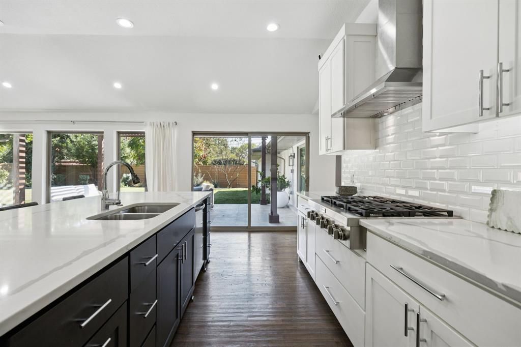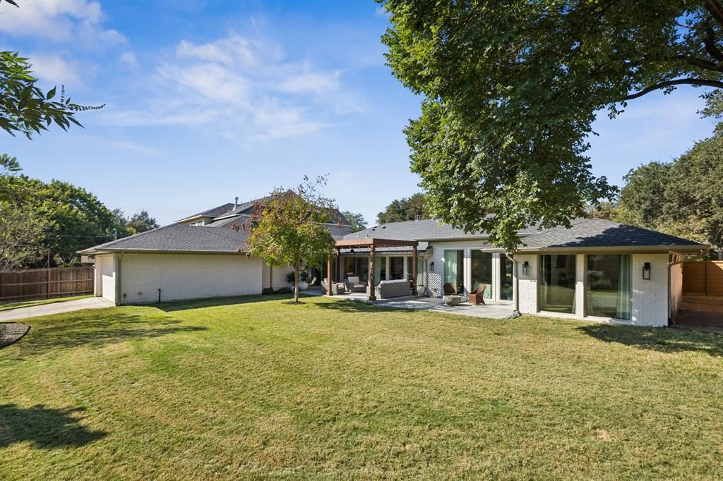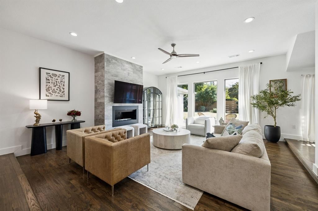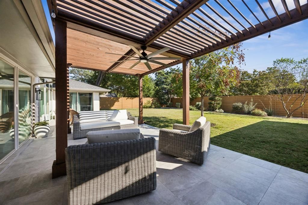 A luxury ranch-style residence in the Dallas private school corridor, taken to the studs and completely redesigned in 2018 for modern living with thoughtful sophistication. This home offers a split-bedroom floor plan with 4 bedrooms, 3.5 bathrooms, a dedicated office, and two spacious living areas, all set under 10-foot raised ceilings that enhance the open, airy feel. Situated on an incredibly manicured lot with pristine curb appeal, the property offers a serene outdoor setting complemented by perimeter landscape lighting and a smart garage system. Inside, real nail-down hardwood floors, high-end finishes, and abundant natural light set the tone for refined living. The chef-inspired kitchen features quartz counters, a large island with USB outlets, and casement windows throughout the home that bring in fresh air with ease. The private primary suite is thoughtfully separated from the secondary bedrooms, creating a true retreat. Every detail has been considered, including remote-controlled fans in every room, low-voltage wiring with a central tech hub, and wall-mounted cable-electric ready plugs, allowing for framed televisions in every space. This home is built for efficiency and comfort with closed-cell foam insulation throughout, tankless water heater, replaced sewer, plumbing, electrical systems, and 220V plug in the garage for electric vehicle charging. Two attic spaces"”one over the garage"”provide ample storage and easy access. Located just down the street from Glen Meadow Park, and Glen Cove Pool, residents enjoy quick access to green space, trails, and outdoor recreation. With its full modern transformation, premium upgrades throughout, and a like-new feel, this turnkey luxury property offers an exceptional lifestyle in a premier Dallas location.