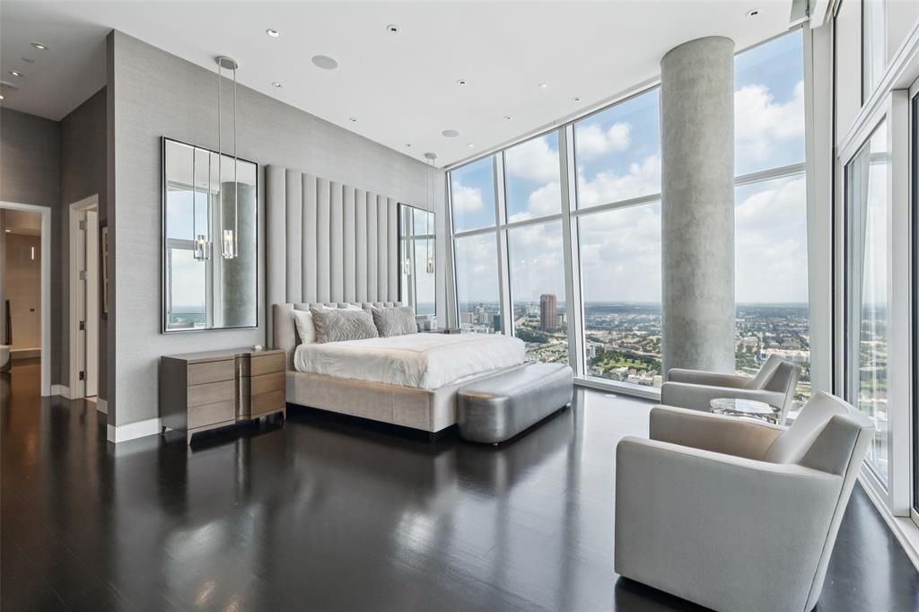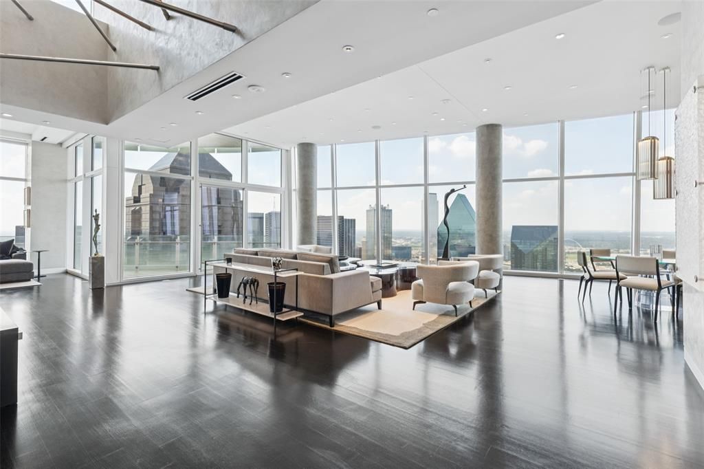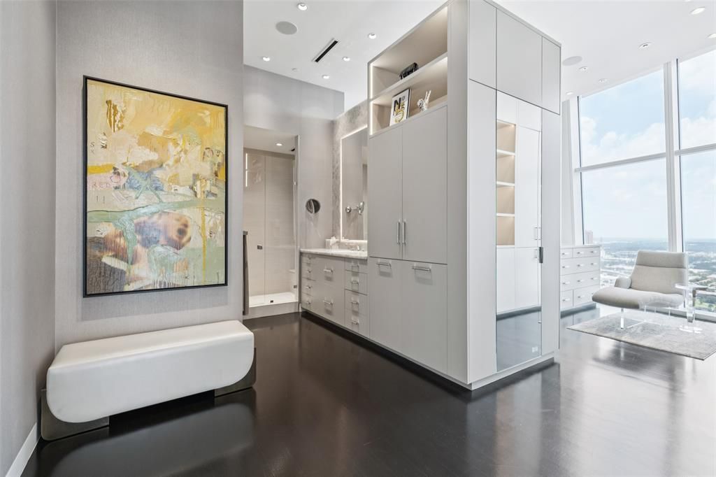 Exceptional opportunity to owh half of the top PH floor inside iconic Museum Tower. Private and direct elevators deliver into the 30 ft tall windowed, pop up atrium accented by a custom art light installation. Thoughtful and significant finishes throughout the home include exotic Walnut, Maple and figured Eucalyptus woods, Nathan Glass Studio thick cast acid etched architectural kiln formed glass. Philip Jeffries exotic wall coverings. Quartzite stone throughout including Crystallo Wow, Calacatta Lux, Adamantium and Crytos. A custom La Cornue range and Scanomat Top brewer industrial automatic coffee system. The perfect floorplan delivers sunrise to sunset views through 12 ft floor to ceiling glass. Dual Primary baths and closets. Separate large in home Office space along with 2 detached storage areas. 3 Premier parking.
