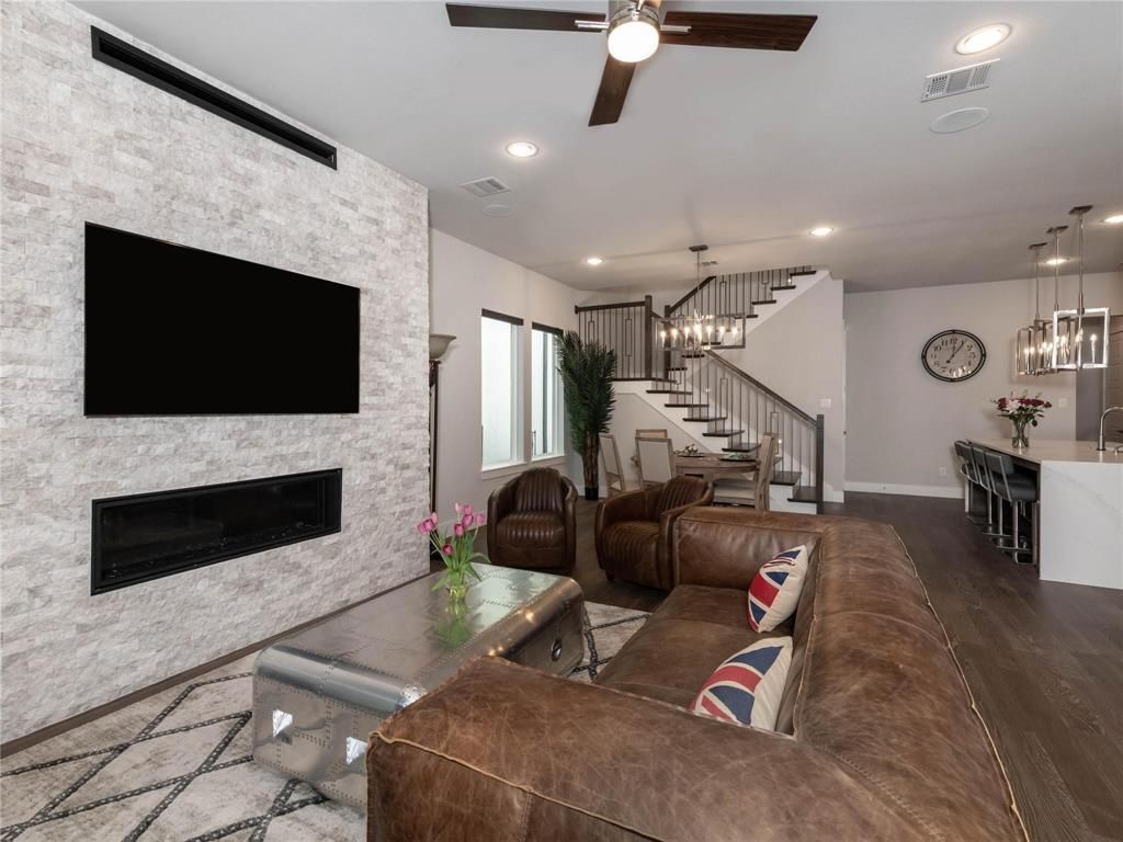 Shorter-term leases are available"”ask for rates. Built in April 2021, this highly sought-after Legacy West, two-story zero lot line Britton Home features 3 bedrooms, 2.5 baths, and a 2-car garage. Conveniently located near Dallas North Tollway and SH121, it's within walking distance to The Shops at Legacy, offering upscale restaurants, bars, and entertainment. The spacious family room connects to the dining area and kitchen on the first floor. Upstairs, the impressive master bedroom includes a balcony, along with two bedrooms with bay windows and a loft or study. Custom blinds are installed. A 3-month minimum lease is required. Other available options include furniture and appliances.