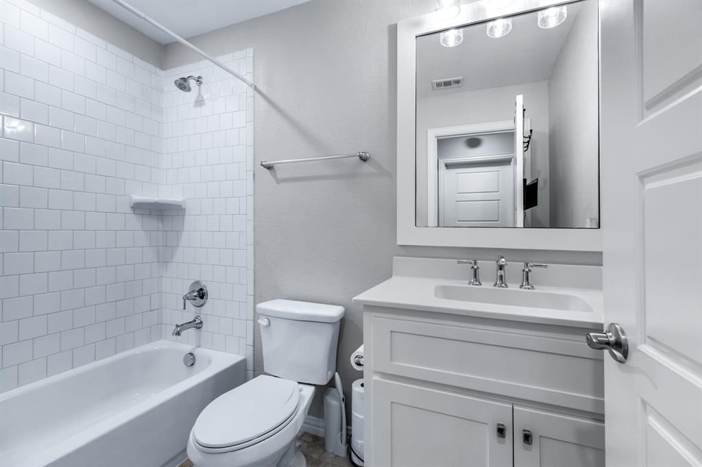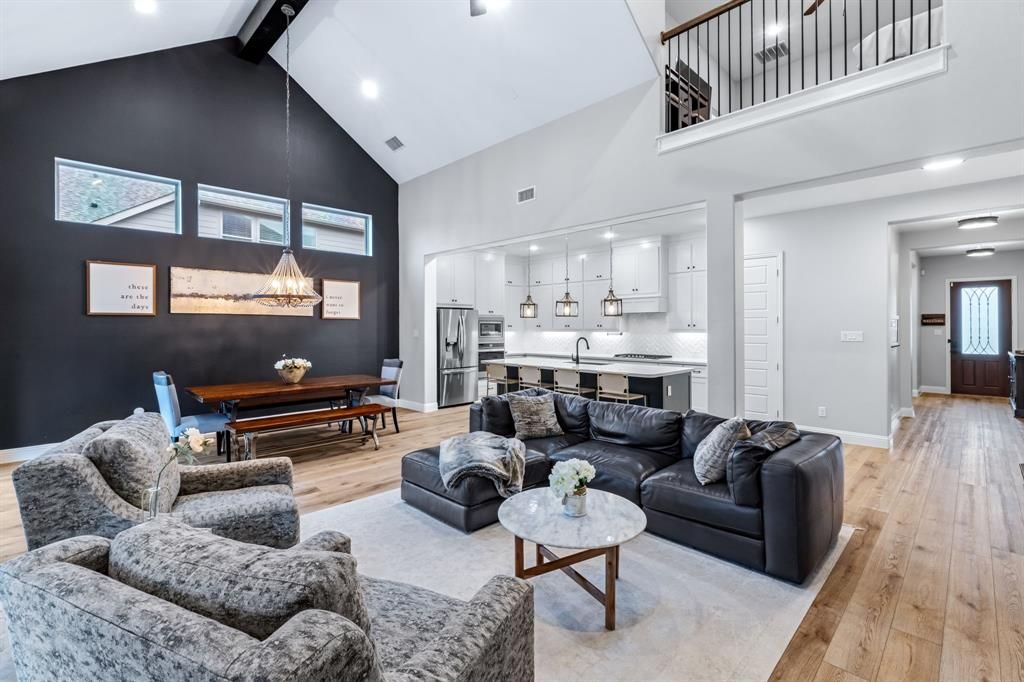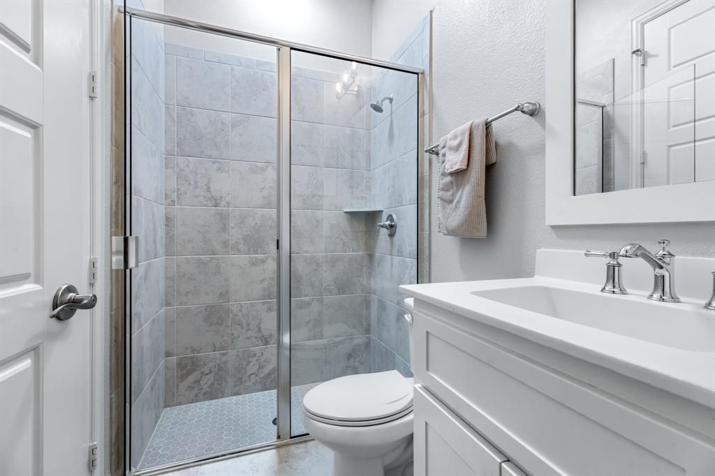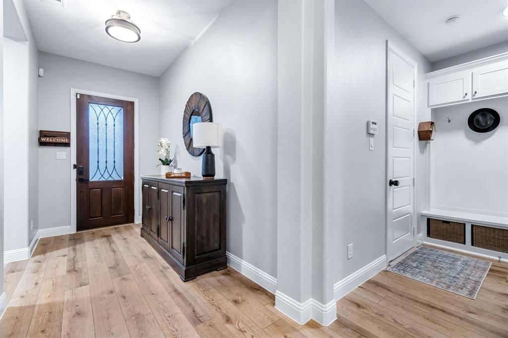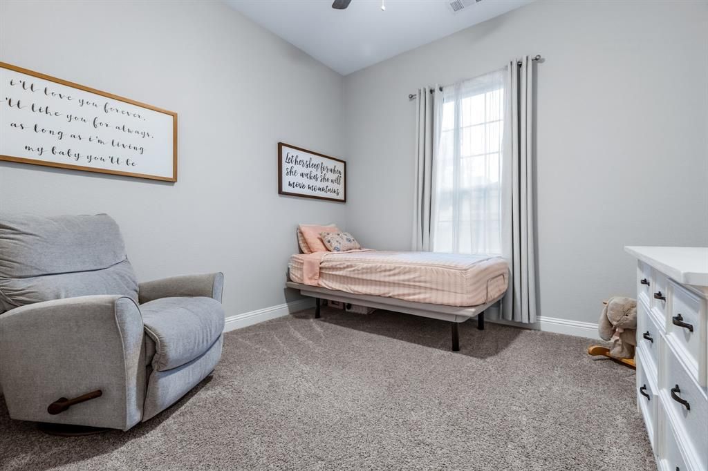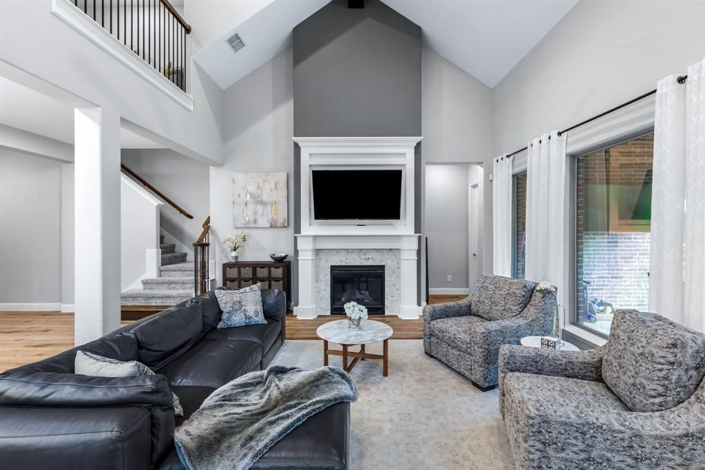 Stunning home nestled in the highly desirable Fairway Ranch community in highly acclaimed Northwest ISD. This immaculate 4 bedroom, 4 full bath home features an open concept floor plan ideal for entertaining with a seamless flow connecting the kitchen to the great room. Natural light fills the main living area which boasts vaulted ceilings, exposed wood beam, designer lighting, LVP flooring, and decorative gas fireplace. The Chef's kitchen showcases a large island with silestone countertops, KitchenAid dishwasher, 5 burner Whirlpool gas cooktop, subway tile backsplash, and walk-in pantry. The primary suite features a garden tub, dual vanities, and oversized shower with frameless enclosure. Two additional bedrooms downstairs including a private guest suite with an ensuite bathroom. Upstairs features a 4th bedroom, game room and media room. Custom upgrades include tinted windows, exterior Jellyfish lighting, and surround sound wiring. Solar panels will keep down your energy bills low! Private backyard with covered patio and motorized shades and a bonus sitting area. Neighborhood features include a resort style pool, multiple playgrounds, fishing pond and walking traiils.