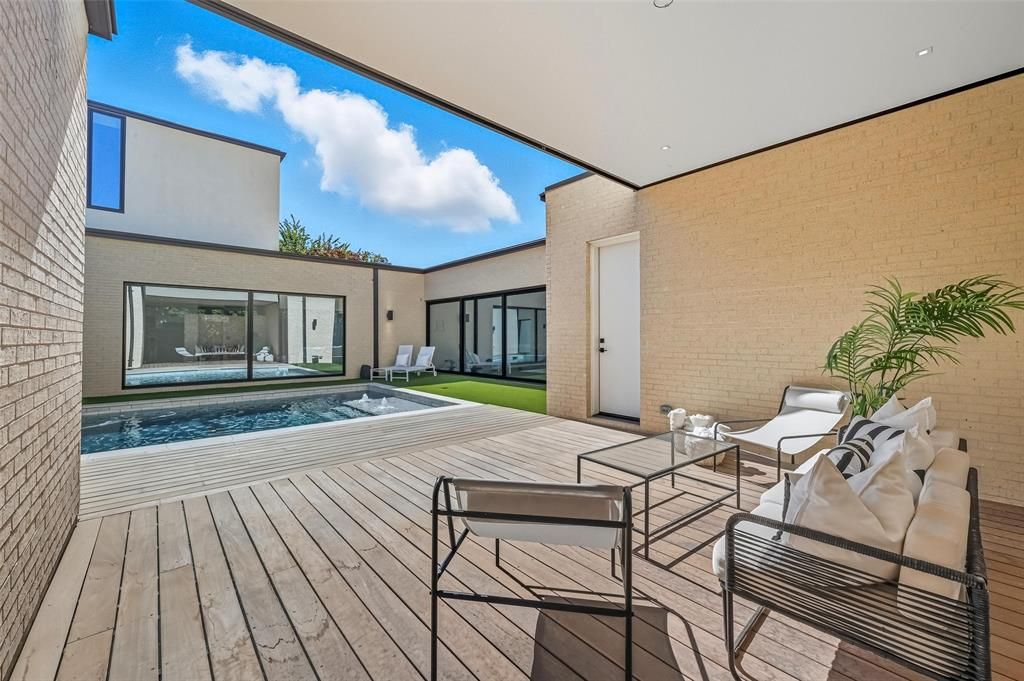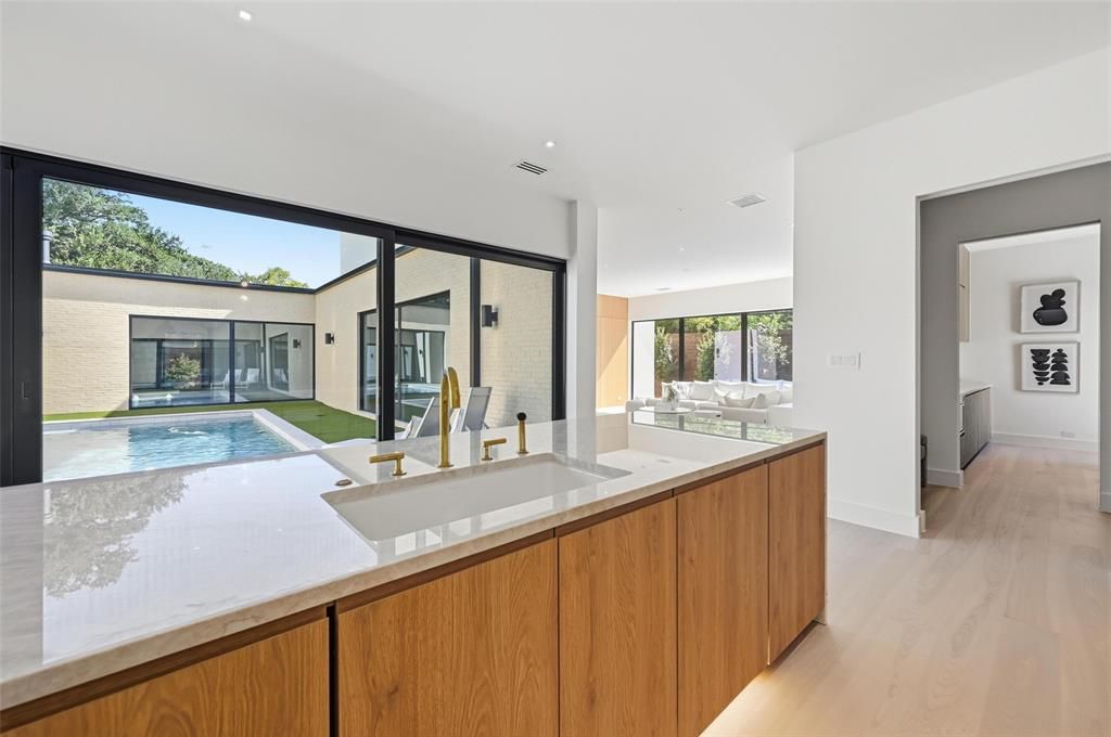 Ideally located near high-end shopping, acclaimed restaurants, and elite private schools, this architecturally iconic residence by AM Homes offers an unparalleled blend of high design and refined living. Designed by renowned architect Josh Nimmo, with interiors by the award-winning SWOON, this one-of-a-kind home is a true work of art. The striking stacked-cube exterior showcases a bold modern aesthetic, featuring creamy brick, Bokara stone, Sarelle pavers, and smooth cement stucco. Every element reflects a commitment to artistry, innovation, and natural harmony. Inside, a serene, gallery-like ambiance is created through white oak-paneled walls, Porcelanosa wood flooring, and custom smooth plaster finishes. The sleek, open-concept kitchen is equipped with top-of-the-line Thermador appliances, bespoke Porcelanosa cabinetry, Waterworks fixtures, and elegant white oak detailing"”perfectly suited for both entertaining and everyday luxury. At the heart of the home lies a private inner courtyard with an Ipe wood deck and a tranquil pool by Gold Medal Pools, seamlessly integrating indoor and outdoor living. A 40-foot Bokara stone wall adds an artful sense of privacy and calm. This is more than a home"”it's a curated lifestyle experience where contemporary architecture, high design, and luxury location converge in perfect balance.