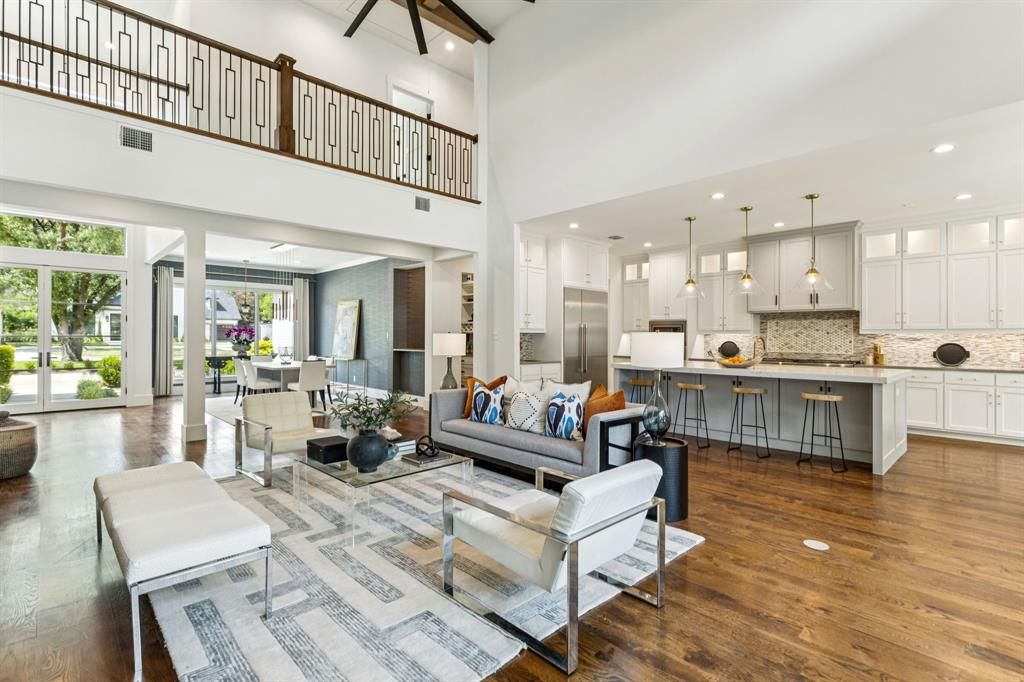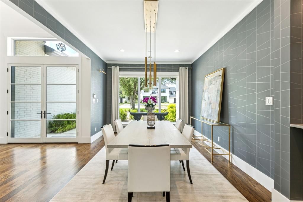 Discover the epitome of luxury with this exquisite home meticulously designed to cater to both relaxation and entertainment. With 5 spacious bedroom suites all with elegantly appointed baths, this residence ensures comfort for family and guests alike. Step inside to a modern architectural design that seamlessly blends casual elegance with functional living spaces. The open-concept floor plan highlighted by the spacious and open great room allows natural light to cascade through the large windows. The formal dining has beautiful wall coverings adding another level of interest. The gourmet kitchen with Thermador appliances, an oversized island and breakfast area make it perfect for everyday living and entertaining. The second living area is great for casual living and a flex space for an exercise room. The light and bright primary suite has floor to ceiling windows and a private entrance to the patio. The soft but elegant wall coverings make it a serene space and the luxurious bath is the perfect space to unwind. The office with built-in desk and bookshelves, guest suite, pool bath and powder bath complete the first floor. Upstairs are three ensuite bedrooms, a living area with an entertainment center, half bath, and a patio and balcony. Outside, the property continues to impress with an outdoor shower and living spaces designed for relaxation and entertainment. The 3 car garage with epoxy floors provides ample space for storage. This home is a rare find, offering the perfect balance of luxury and convenience.