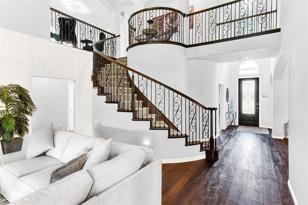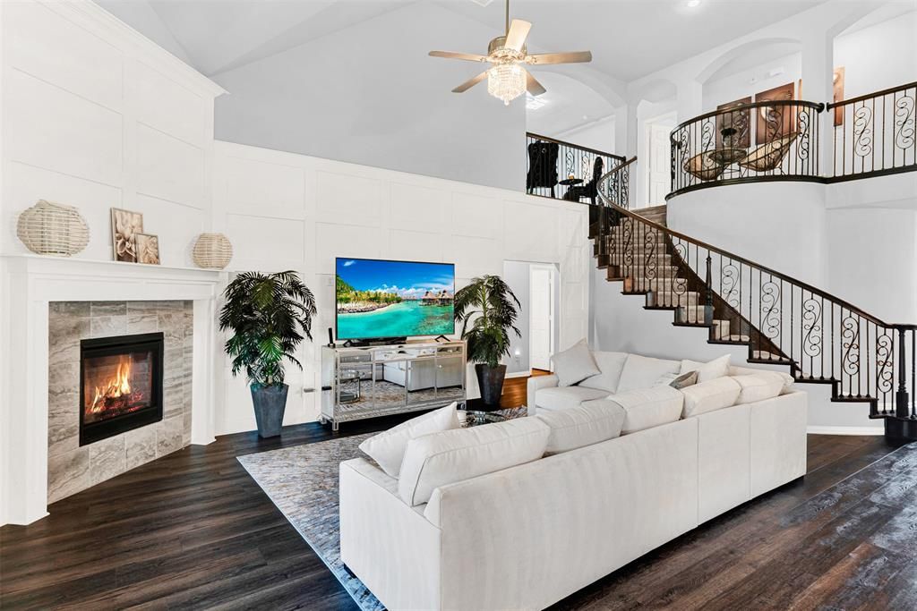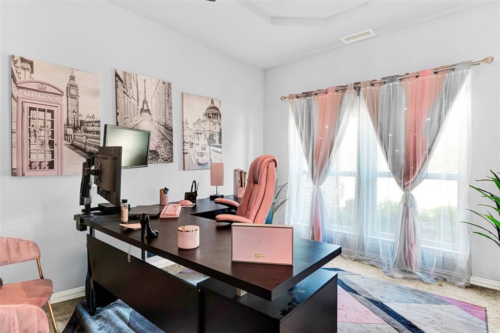 This stunning, model-like home is designed for both family living and entertaining, offering an exceptional blend of comfort, craftsmanship, and style. Set on a beautifully landscaped lot with immaculate curb appeal and manicured flower beds for year-round color, this home feels better than new with both builder and thoughtful after-market upgrades throughout. The inviting open-concept layout features five spacious bedrooms, multiple dining areas, two living spaces, a dedicated home office, media room, and covered front and back porches"”providing plenty of room for family and guests. The formal dining area flows seamlessly into the butler's pantry and a well-appointed island kitchen showcasing custom cabinetry, quartz countertops, a gas cooktop, and ample counter space and storage. The sunny breakfast nook and open living room with upgraded fireplace create a warm and welcoming space for gathering. The primary suite is a true retreat, featuring a tray ceiling, spa-inspired ensuite bath, and spacious walk-in closet. Upstairs, soaring vaulted ceilings, designer lighting, and a beautifully upgraded stair railing enhance the home's elegance, while floor-to-ceiling windows fill the spaces with abundant natural light. Step outside to the covered patio overlooking a fully fenced backyard with plenty of space to play, relax, or entertain. Thoughtful upgrades continue with custom lighting, tailored window treatments, modernized garage, and a ChargePoint electric car charging station for eco-friendly convenience. Located in the vibrant Grayhawk community, residents enjoy resort-style amenities including a community pool, playground, greenbelt areas, sidewalks, and perimeter fencing. With easy access to I-20 and Hwy 80, plus local shopping and dining in the heart of Kaufman County, this home perfectly balances modern living with small-town charm. Experience the ideal combination of luxury, functionality, & sustainability"”this Grayhawk beauty is ready to welcome you home!