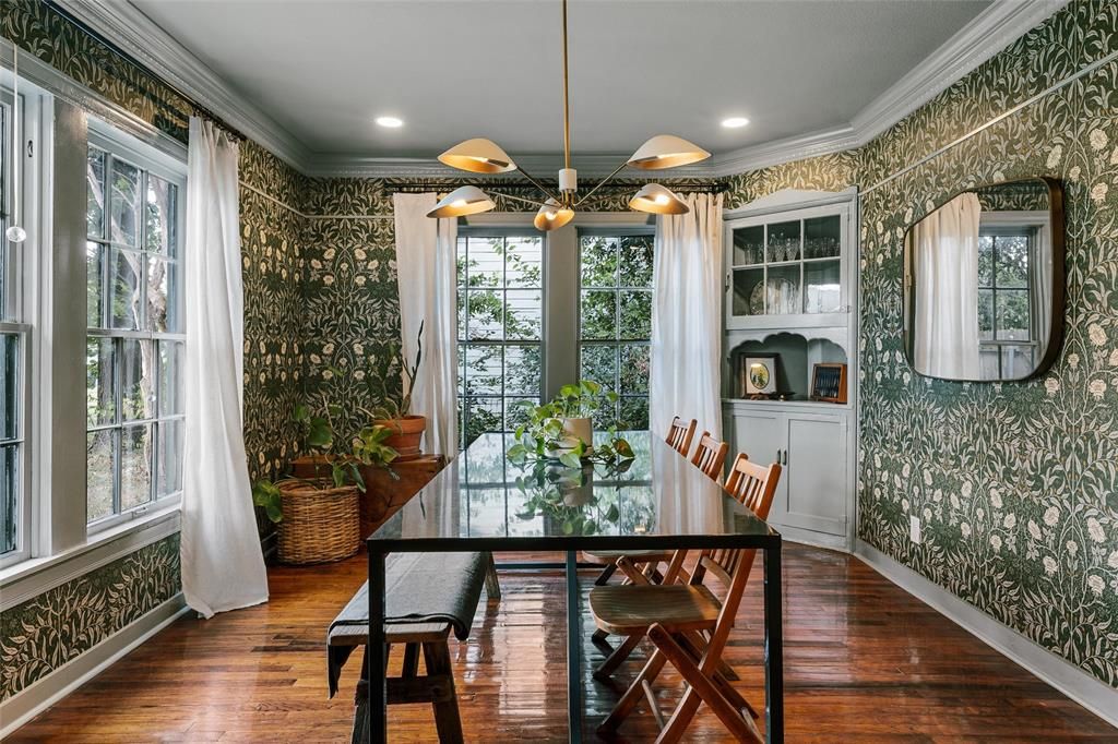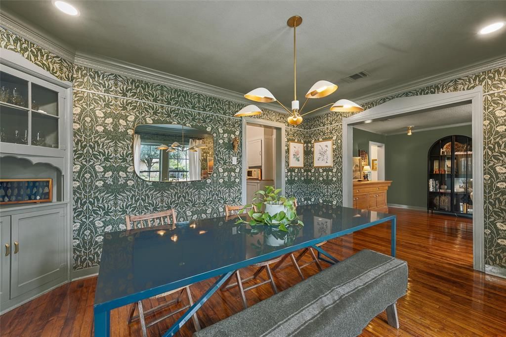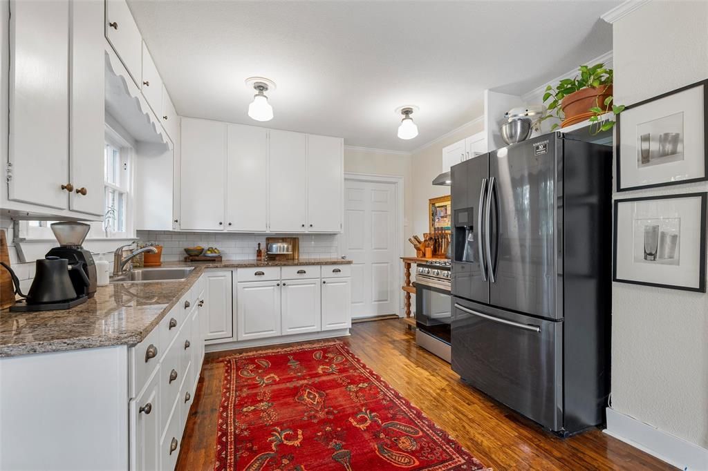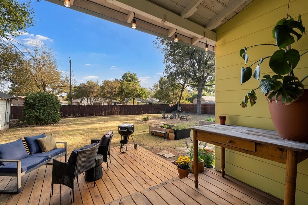 If you've been waiting for a home with original character and designer updates to come on market, then today is your day! With its carved built-ins, dreamy fireplace, and hallway telephone nook, this 1930s cottage was already filled to the brim with original charm. Previously a blank white space, the living, dining, and kitchen areas have been beautifully refreshed by Joanna Gaines, as seen on Magnolia Network's Mini Reni. Now infused with gorgeous, deep colors and inviting patterns, these rooms are filled with whimsy and style. Cheery white-and-gold checkerboard tile turned a simple breakfast nook into an artisanal focal point "” and the most darling spot to enjoy a cozy morning coffee! The spacious 3-bed, 2-bath home boasts beautiful original hardwood floors, loads of natural light, a dedicated laundry room, and a bonus room perfect for a home office. And the list of amenities is just getting started "” the house sits on a double lot and features an incredible, privacy-fenced backyard with garden beds, a patio area, a brand-new partially covered wooden deck, and a detached unit with power, ready for your finishing touch to transform it into an ADU or guest house. Set up a showing quickly "” this charmer won't last long!