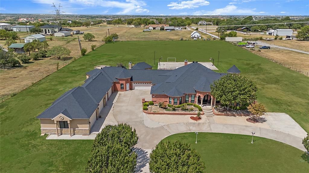 Say hello to this stunning property on 4.2 acres in Haslet, TX. This property includes a main house, a guest house, and 9 car garage. Be welcomed by a custom circle drive way with mature trees lining the drive. The main house encompasses a generous 5,806 sq. ft of living space, 5 bedrooms, 3 and a half bath, and 9-car garage. The additional house provides a separate living space with privacy, 1333 sq. ft, 3 beds, 2 full baths. The main house also includes 2 dining rooms, and an office. Outside you are greeted with an incredible backyard oasis, swimming pool, spa, large sized grilling area, a basketball court, and a safe tornado shelter. Don't miss this opportunity.