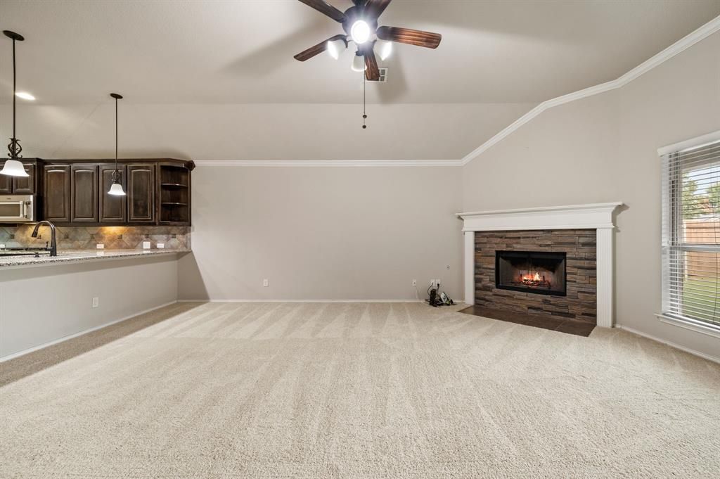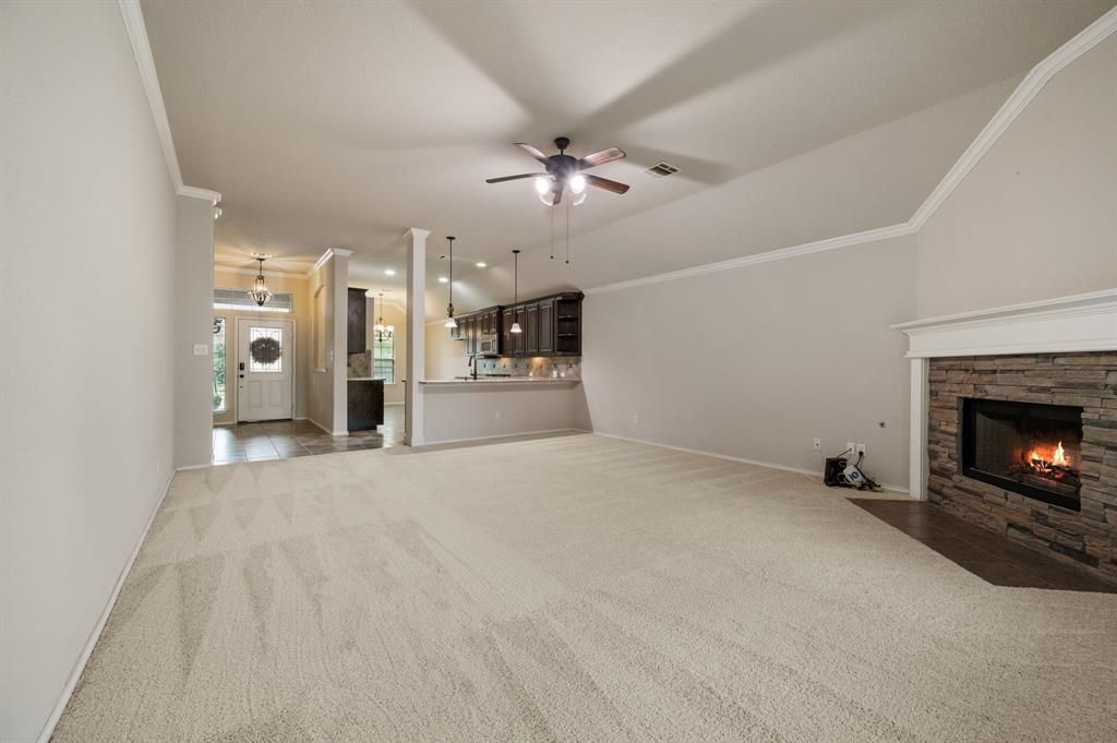 Welcome home to this beautifully updated 4-bedroom, 3-bathroom residence featuring numerous recent upgrades, including a CLASS 4 ROOF-2023, STAINLESS STEEL KITCHEN APPLIANCES-2025, and NEW CARPET THROUGHOUT-Oct 2025! Designed with flexibility in mind, this highly desirable floor plan offers the perfect setup for multi-generational living. The private upstairs retreat includes a full bedroom, bathroom, and living area "” ideal for guests, in-laws, or older children. At the heart of the home, the spacious open-concept living area is centered around a cozy stone fireplace, creating an inviting space for gathering and entertaining. The kitchen impresses with abundant cabinetry, granite countertops, a large pantry, and sleek stainless steel appliances. The primary suite is tucked away at the back of the home for privacy and comfort, while two additional guest bedrooms and a full bath are conveniently located downstairs in a split layout. Enjoy morning coffee on the charming covered front porch with room for rocking chairs, or relax on the covered back patio overlooking the backyard. Conveniently located near a variety of shopping and dining options, this home combines comfort, modern updates, and timeless appeal "” truly the perfect place to call home.