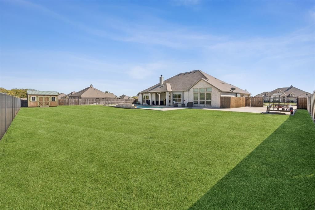 Welcome to your dream home in McKinney situated on a beautiful one-acre lot. Step inside to discover a bright and airy open floor plan filled with natural light. To your right, a dedicated office provides the perfect space for remote work, while the formal dining room to your left is ideal for family gatherings and special occasions. The living room features a gorgeous stone fireplace, creating a warm and cozy atmosphere for relaxing evenings. The kitchen boasts a large granite island, plenty of cabinet and counter space, and a layout designed for both everyday living and entertaining. The spacious primary suite offers a peaceful retreat, complete with an ensuite bathroom featuring dual vanities, a large tub, and a walk-in shower. The home includes three additional bedrooms and two full bathrooms. The home also features a media room, the perfect place to relax. Step outside to the sparkling pool, perfect for Texas summers, surrounded by plenty of room to lounge, grill, and enjoy the outdoors. The property includes a three-car garage, RV Hookup, and an outdoor storage shed. Enjoy being on the outskirts but still a short drive to everything McKinney has to offer.