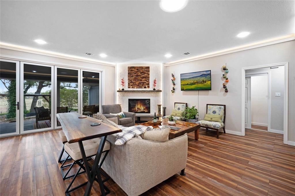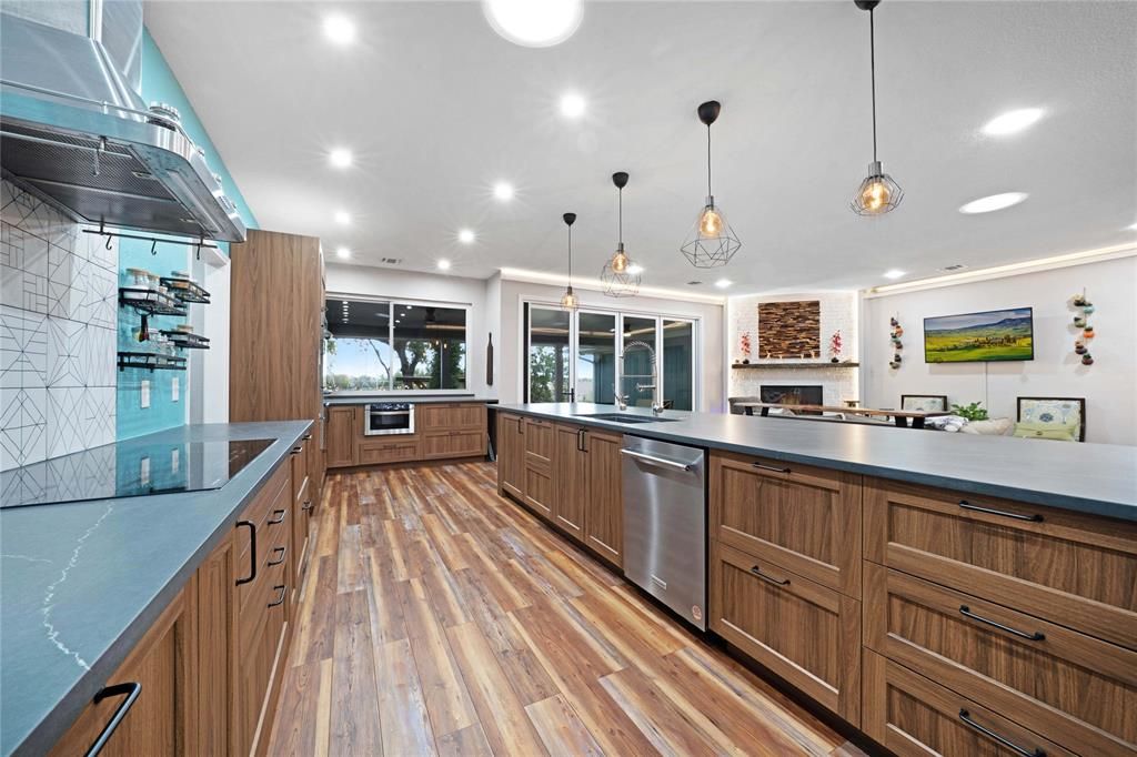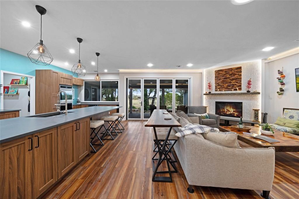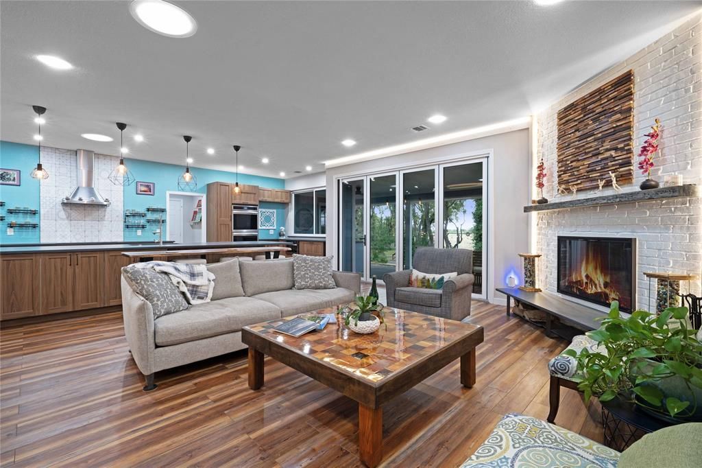 Gorgeous Ranch Style Retreat on a Third of an Acre! Welcome to this beautifully updated 3 bedroom, 3 bath home that perfectly blends modern elegance with an eclectic flair located in a community with a voluntary HOA. Step inside to discover all new luxury vinyl plank flooring in 2023 and fresh interior paint throughout. The stunning European style kitchen features brand new cabinetry with soft close drawers, a pull out pantry, quartz marble style countertops, an induction cooktop that stays cool to the touch, and a double oven offering 15 cook modes, every chef's dream! A unique veggie and fruit drawer and added dining storage with epoxy counters enhance functionality and charm. The inviting living room showcases a fully redone wood-burning fireplace with a quartz mantle in 2020, dual solar tubes, recessed can lighting with night light mode, and elegant crown molding with integrated lighting for added ambiance. Expansive slider doors both slide and fold completely open, creating a seamless transition to a serene backyard oasis complete with two working fountains, a charming bridge, a firepit area, and a spacious patio with grill, lighting, and lounge areas, ideal for relaxing or entertaining. The thoughtful split-floor plan includes a private guest suite with a fully remodeled ensuite bath in 2023, a spacious primary suite with dual closets, and direct porch access. The oversized third bedroom offers potential for a second primary suite conversion. Additional highlights include two water heaters, one interior and one in garage, new exterior soffits and lighting with dusk-to-dawn sensors, a 2020 roof, Sentricon termite system, iron and glass security door, and a large shed for storage. Every detail has been considered, making this home as functional as it is beautiful. Experience the perfect combination of sophistication, comfort, and peaceful outdoor living, your private oasis awaits!