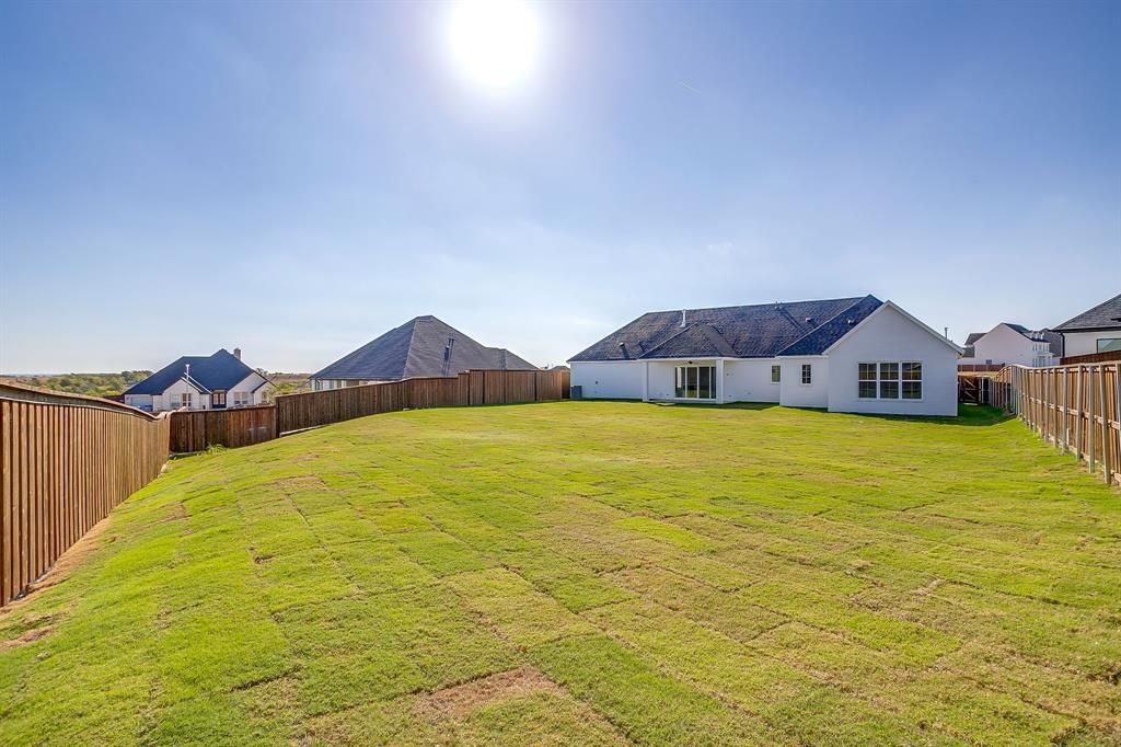 A must see! Colonial style home with a large backyard with views of Downtown Fort Worth! Available now! A beautiful one story home with tall cathedral ceilings, great views, and a backyard big enough to fit a pool. Exterior of the home is white painted brick, columns, cedar garage door, with a large front door unit. This home has an office with a closet to be a bedroom if needed, dinning room with a built in bar hutch, family room with tall cathedral ceilings and sliding door unit to capture the views, cast stone fireplace, master bedroom has a tall cathedral ceiling, master bathroom has a free standing tub inside the huge shower with a rain shower head, all closets are large throughout the home. White oak, marble, decorative lighting, quartz countertops, with a touch of gold throughout! Please contact me for videos and photos of the home!