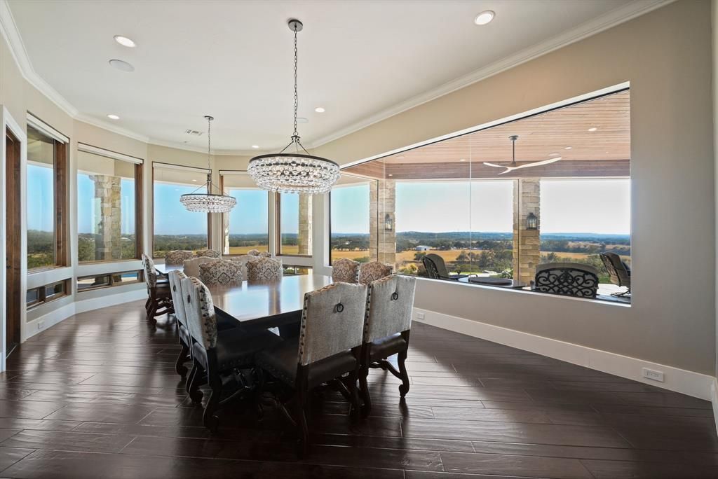 Stunning custom-built luxury home by G. Morris Homes in the heart of the Texas Hill Country. This one-of-a-kind property offers panoramic views of the Guadalupe River & surrounding hills, the perfect setting for quiet, luxury, Hill Country living. Located in the prestigious Mystic Shores community, this home combines privacy, elegance, & convenience, with easy access to San Antonio, Austin, New Braunfels, & Houston, making it ideal for both a full-time residence or a Hill Country getaway. This thoughtfully designed estate offers privacy, comfort, and elegance, with multiple gathering areas, and stunning views from every room. Enjoy a glass from your 400-bottle climate-controlled wine room as you dine overlooking the river. The outdoor living spaces are equally impressive, featuring a covered patio with electric shades, a pavilion with heated floors, fireplace, air conditioning, and an infinity-edge pool, hot tub, and waterfall for year-round relaxation. For car enthusiasts, there's room for up to 8 vehicles across multiple garages. Smart home features include security cameras throughout, all controlled from your phone or tablet. Designed with ADA accessibility, the home includes an elevator, ramps, wide hallways, and accessible showers. A private guest house provides a full kitchen, living area, laundry, bedroom, and bath, ideal for guests or in-home care. Built with efficiency and durability in mind, the property features insulated walls and ceilings, Aprilaire systems, a four-step water filtration and UV treatment system, cistern-fed irrigation, and a commercial Kohler generator for backup power. Enjoy the peaceful surroundings, where deer and native birds are part of everyday life, and a private switchback trail leads to your own serene meadow. Conveniently located near San Antonio, Austin, New Braunfels, and Houston, this property offers the best of Hill Country living, luxury, privacy, and views that will take your breath away. These views are worth the visit.