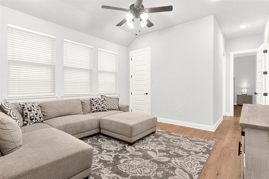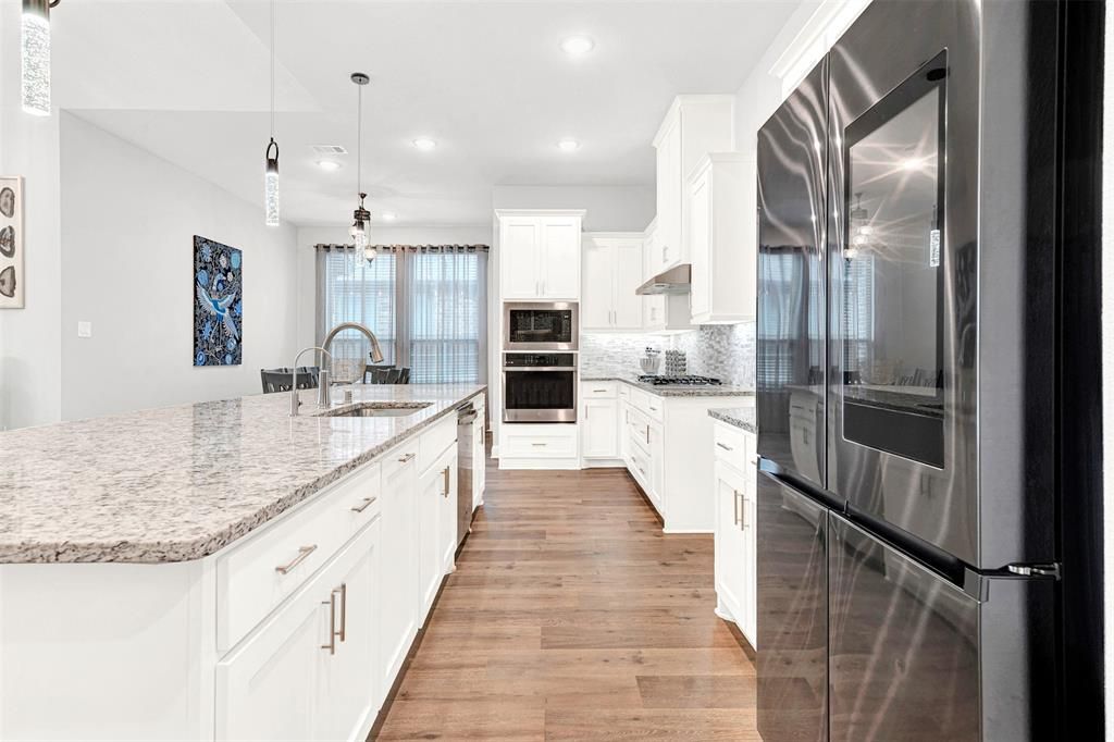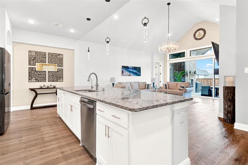 Stunning one story classic in beautiful Trinity Falls with tons of neighborhood amenities close by! Welcome to this open and inviting living space featuring gorgeous cathedral ceilings with four-bedroom, three-baths features a functional split floor plan with a private office at the front"”perfect for working from home or a personal gym. The chef's kitchen is the centerpiece of the home, featuring an oversized granite island, stainless steel appliances, abundant cabinets, and a spacious walk-in pantry. The large eat-in kitchen opens to the family room, complete with a gas fireplace and sliding glass doors leading to an oversized covered patio with a designer fireplace, ceiling fan, and gas for your outdoor kitchen and TV hookups"”ideal for entertaining year-round. The primary suite offers tray ceilings, 8-foot doors, and a luxurious ensuite bath. A private wing includes two secondary bedrooms, a game room, and walk-in closets, creating the perfect space for family or guests. Luxury vinyl flooring runs throughout the main living areas. Additional highlights include an extended 27-foot garage with extra depth, a water softener, tankless water heater, and custom doggy door with steps. With its thoughtful layout, modern finishes, and front porch with sunset views from neighboring park across street , and exceptional back patio living space this home blends comfort, functionality, and style in one of McKinney's most sought-after neighborhoods. Must see to believe!