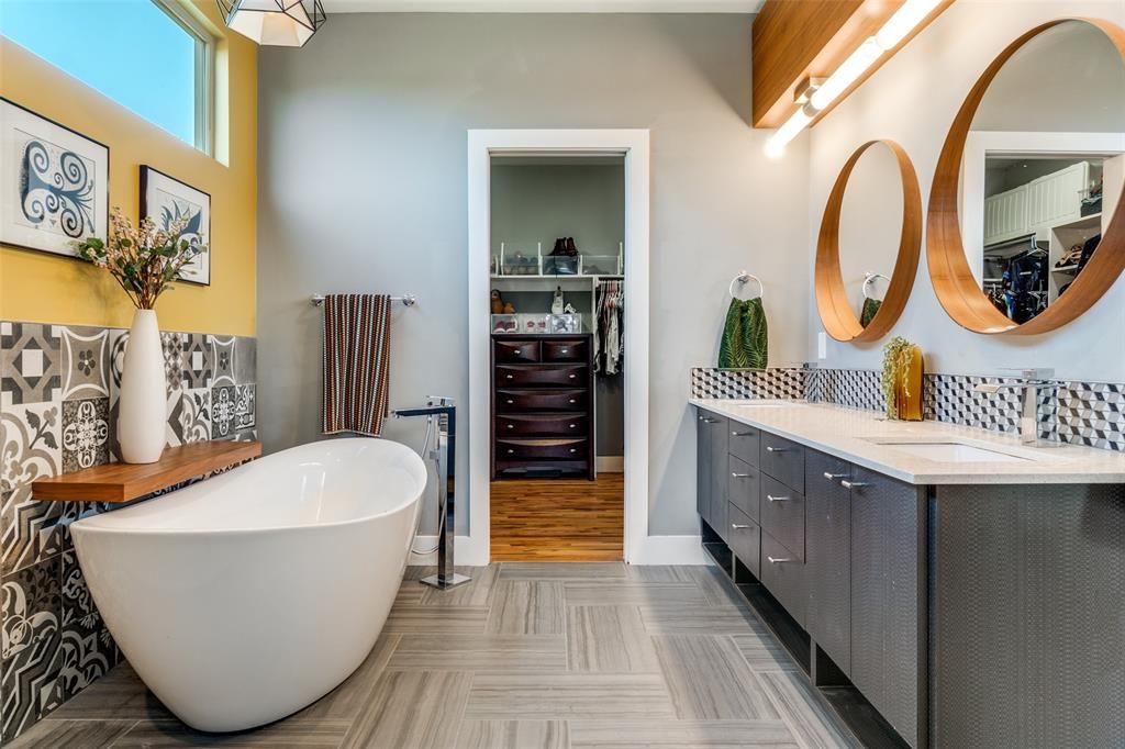 This modern showcase was completely rebuilt from the foundation up in 2018 by the owner builder. Open and modern floorplan with high ceilings and designer touches throughout the home, including a custom designed front door, modern staircase, see-through fireplace in the dining room, custom cabinets in the kitchen, custom finishes in all bathrooms and wood floors throughout. Covered front porch, oversized, covered and picturesque deck in the rear and an open patio upstairs with a view! 2 bedrooms down and 3 bedrooms, including the primary, upstairs. There is an additional home office downstairs that is quiet and private. Two living areas allow everyone to have their own space! The home has two tankless water heaters and two HVAC systems as well as solar panels on the roof which keep energy costs to a minimum.