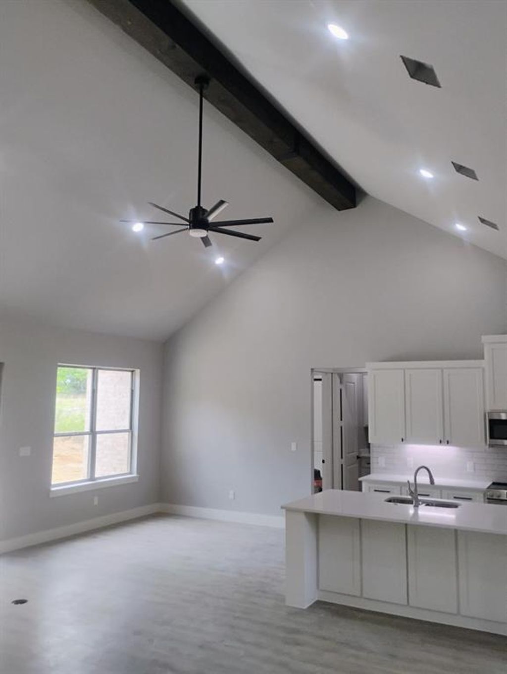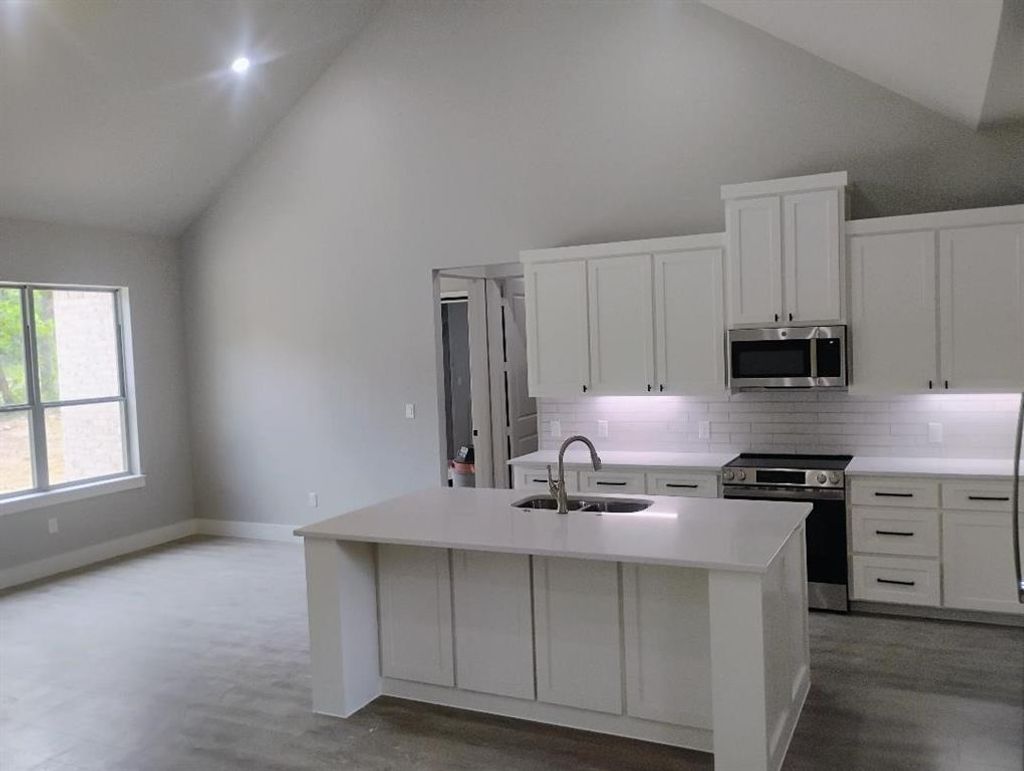 New construction single family home built like a custom home with no corners cut. Energy efficient will full foam encapsulation and energy efficient heat pump and windows. Home features an open floor plan with 18' vaulted ceiling in the great room-kitchen-dining room. The rest of the house has 10 ft ceilings with 8 ft tall doors. The master bath has double sinks and a large walk-in shower and walk in closet. The house has laminate flooring throughout with tile in the bathrooms. Nice covered back porch and two car garage. The treed lot backs up to a greenbelt so there will be no homes behind you. Take a look at this house and you will see features that others in this price range just don't have.