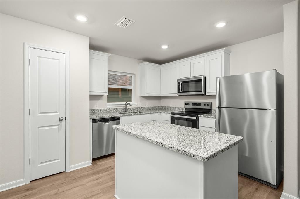This beautiful one-story home has three bedrooms, two bathrooms and a wonderful open-concept layout. The kitchen has beautiful wood cabinetry, sprawling granite countertops, a convenient island and energy efficient appliances. Whether you are cooking dinner for your family or a feast for the whole neighborhood, this kitchen is ready for it! The secluded master suite includes a spacious bedroom, private bathroom and large walk-in closet. This home also features a coveted covered patio that is a great space for an outdoor seating area or a grill. This plan offers the space and upgrades that you are looking for!