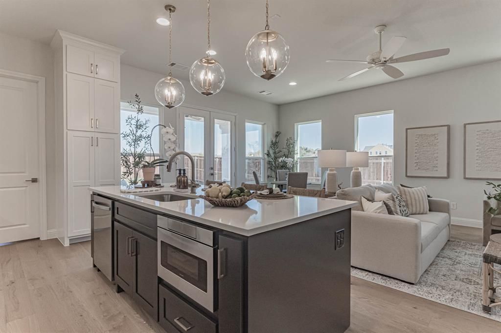 Amazing current model home ready for its first owners in coveted Parks of Aledo Lakes. Built in 2023, and never lived in, this home features over 65 thousand in upgraded features and a refrigerator, washer dryer and all window coverings. Built ins, upgraded custom cabinetry, an amazing game room with built in bar for entertainment and family gatherings, and four spacious bedrooms, all with walk in closets. The private, luxurious owner's suite features a huge freestanding tub and separate shower with an enormous closet and designer tile and lighting to die for. Enhanced flooring is featured in every room, and designer draperies and blinds are featured in every space. Formal dining and informal island and smaller table seating in the open kitchen, living and dining make this a home to host family and friends throughout the holidays and into Super Bowl season. The home was designed for a fifty foot wide site but is on a sixty foot site giving extra yard space fit for a future pool, playscape or putting green. Designer touches throughout make this a one of a kind home in a wonderful amenity filled neighborhood served by award winning Aledo ISD schools. Neighborhood features include a large green space for soccer or play immediately across the street, several parks and two lakes to enjoy fishing or just relaxing by as you walk throughout the neighborhood. Large front and rear covered patio and porch for outdoor seating and entertainment. Every detail is perfect in this model home that could be yours. The neighborhood is immediately adjacent to the highly regarded hike and bike trail known by all who enjoy outdoor activities like walking, biking and hiking. Truly a gem in a highly sought after neighborhood... Schedule your tour today.