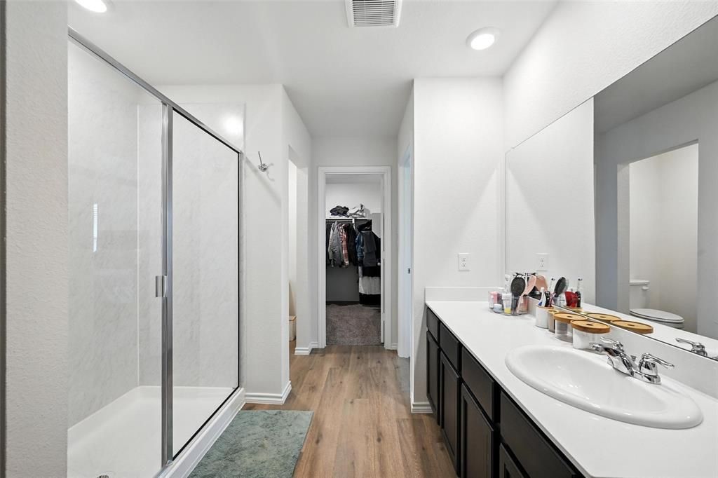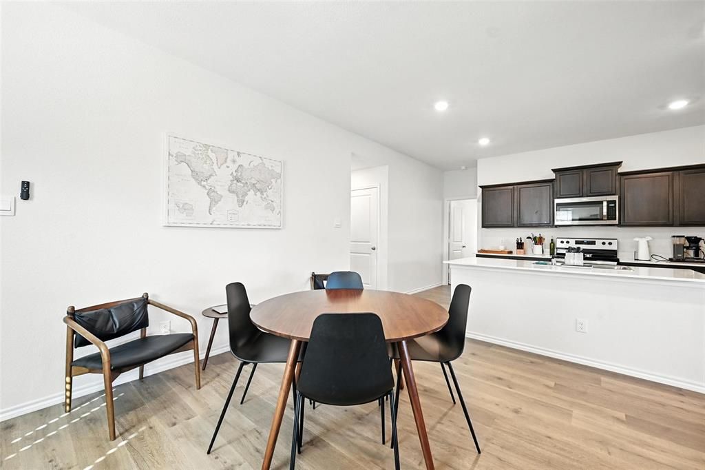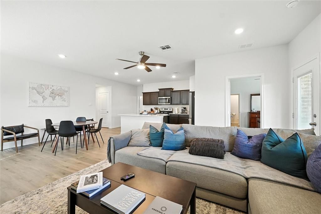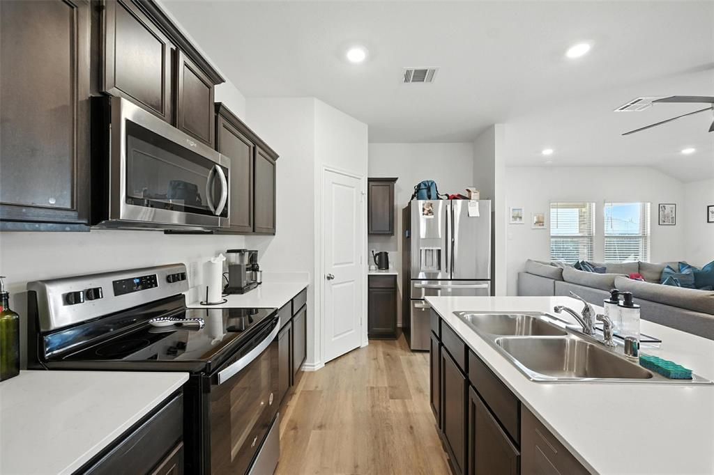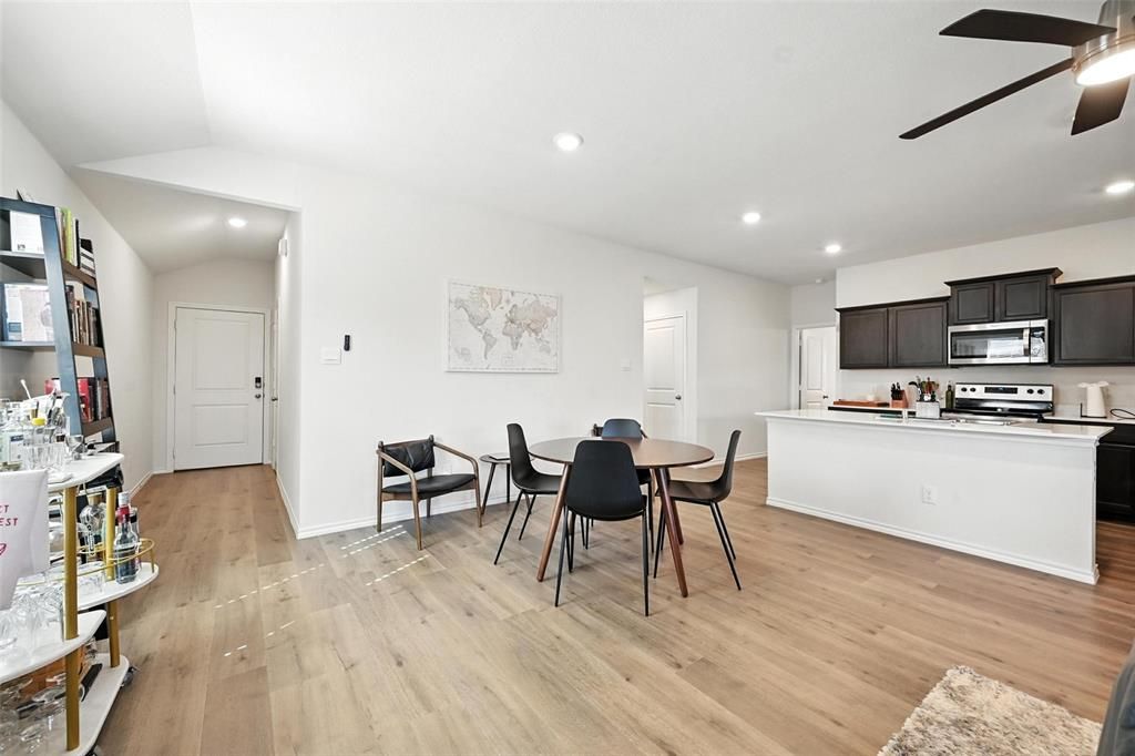 Beautiful 3 bedroom home in a non-HOA neighborhood. Better than new as construction has been completed in this neighborhood! This spacious home features and open floorplan with the upgraded kitchen open to the living and dining areas. There is plenty of seating for meals with a generous breakfast area as well as seating for 3-4 at the bar. The kitchen is full of upgrades, including quartz countertops, stainless steel appliances, pantry, and refrigerator that is included with the sale. There is LVP flooring in the living areas and beautiful carpet in the 3 bedrooms. All bedrooms include ceiling fans and large closets, including 2 walk in closets in the master bedroom. White 2 inch blinds are on all windows. The backyard includes a large covered patio, plenty of room for pets and kids, and a privacy fence. The location can't be beat! The beautiful new Sherman HS is 2 minutes away, and both a city park and golf course are within a few minute drive of the home. Refrigerator and porch swing can be included with an acceptable offer.