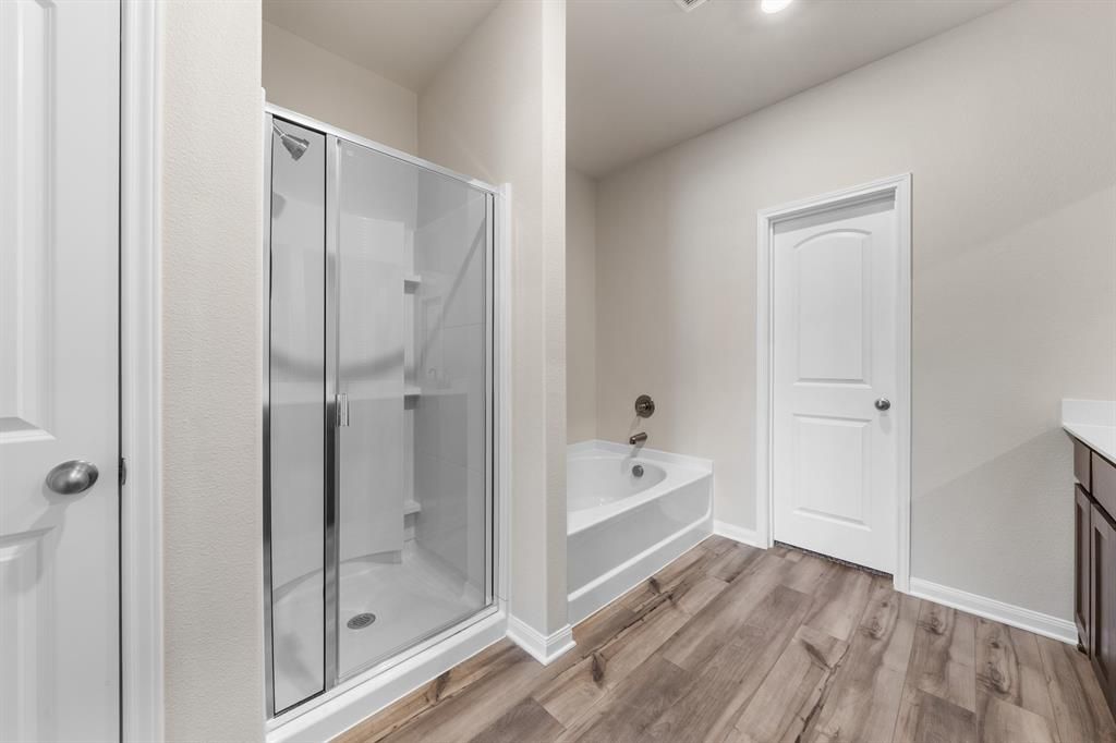Cypress - 2 story, 4-bed, 2.5-bath, 2,054 sqft! The Cypress floor plan was created for family living. This three-bedroom home is equipped with a chef-ready kitchen, oversized bedrooms with walk-in closets and large game room upstairs. A breakfast bar overlooking the large living room on the main level of the home provides additional space for dining and entertaining. Enjoy the peace and privacy you desire in the private, first-floor, stunning suite. Inside, you'll find tranquil front yard views and a spa-like master bath with a large soaker tub, a glass-enclosed shower and a huge walk-in closet. The Cypress plan at College Park comes with all the designer upgrades and modern features that today's homebuyer is seeking, adding value and style with granite countertops in the kitchen, wood cabinets with crown molding, durable plank flooring, and more!