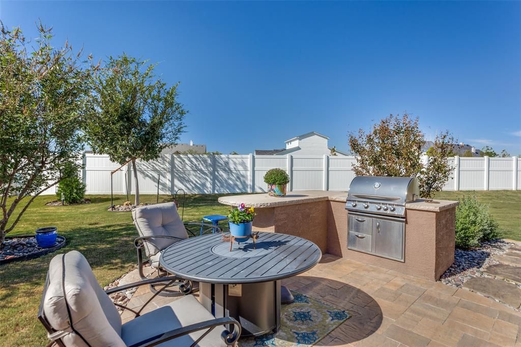 Discover comfort, style, and privacy in this beautifully upgraded home on a large, fully fenced lot in the highly sought-after Robson Ranch, Denton community. Designed with high-end finishes, this open-concept home features a bright, spacious living area, a gourmet kitchen with premium appliances, a Blanco sink, and a built-in outdoor grill with gas line"”perfect for entertaining. The primary suite offers a relaxing retreat with a spa-like bath, generous walk-in closet, and peaceful views of the fenced backyard, where you can enjoy beautiful Texas sunsets. Additional features include an attic lift and drop-down stairs, adding convenience and valuable storage space. Step outside to your private, fully fenced backyard oasis"”ideal for pets, gardening, or quiet evenings under the covered patio surrounded by mature landscaping. Residents of Robson Ranch enjoy resort-style amenities including 16 pickleball courts, tennis, golf, fitness centers, indoor and outdoor pools, walking trails, community gardens, and a large dog park, plus countless clubs and social events. Newly added Bocce area now available . 9900 Silver Rock Way combines thoughtful upgrades, privacy, and an unbeatable active lifestyle"”schedule your private showing today. .
