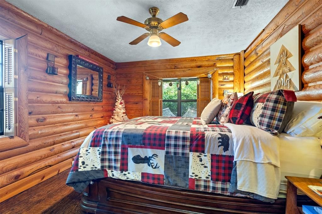 Welcome to your dream home a meticulously maintained log cabin nestled on a lush, tree-filled corner lot in one of the most desirable communities in North Texas. Just a short 10-minute stroll to the lake and moments away from premier shopping & dining, this rare gem offers the perfect balance of tranquility, convenience & lifestyle. Step inside this 4-bed, 2-bath masterpiece, where rustic charm meets modern elegance. Find hand-scraped wood floors & travertine tile thru. Enjoy a chef's dream kitchen with a large center island, granite counter, travertine backsplash, 5-burner gas range, SSA's & abundant cabinetry. The cozy family room anchored by a gorgeous fireplace is perfect for quiet evenings or lively gatherings. Upstairs discover a sprawling game room featuring a lighted dance floor, DJ booth, wet bar & access to a back deck that leads to a rooftop terrace with panoramic views, an entertainer's dream! The spacious primary suite showcases a fireplace, spa-like ensuite bathroom with soaking tub, walk-in shower & cedar closet with an ensuite bedroom ideal as a nursery or home office. Appreciate a garage with a dedicated workshop for hobbyists or DIY enthusiasts. Find a large main level utility room with extensive counter and cabinet space for seamless function & organization. Enjoy outdoor entertaining at it's finest while you relax on the covered porch or host friends on the multiple decks & patios surrounded by serene natural beauty. The home's exterior has recently been upgraded with a CoolWall coating system for structural log maintenance, complete with a transferable warranty for added peace of mind. Just minutes from Double Tree Ranch Park, featuring splash pads, outdoor concerts, fishing, and scenic bike trails. Brand new upstairs AC unit for energy-efficient comfort year-round. Award winning schools. This extraordinary log cabin offers the rare combination of rustic charm, luxury upgrades. A true sanctuary in the heart of the city.