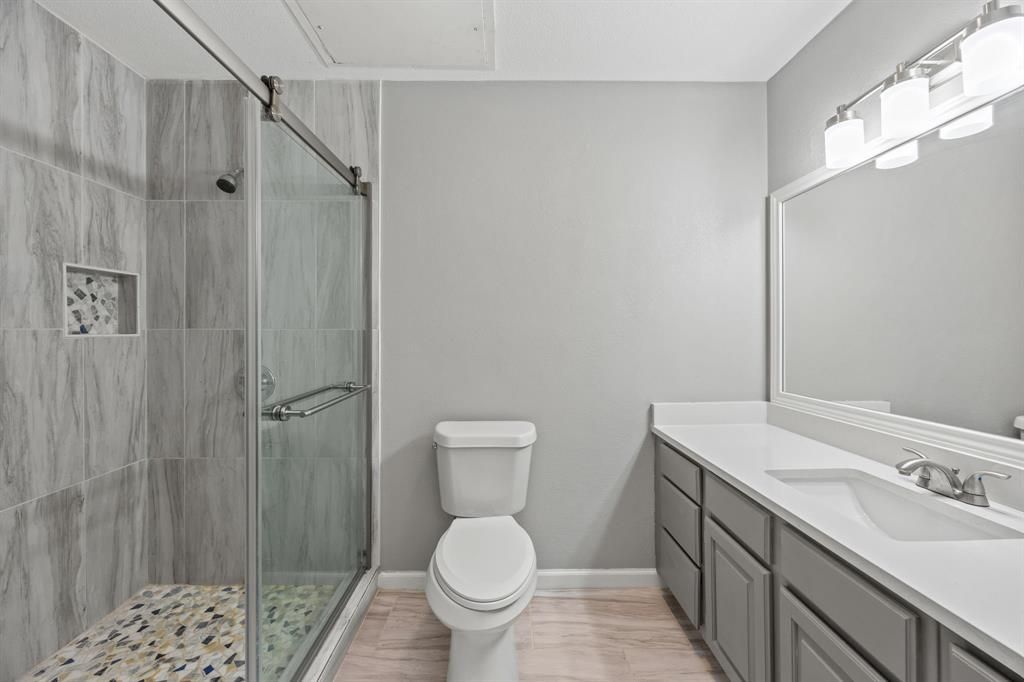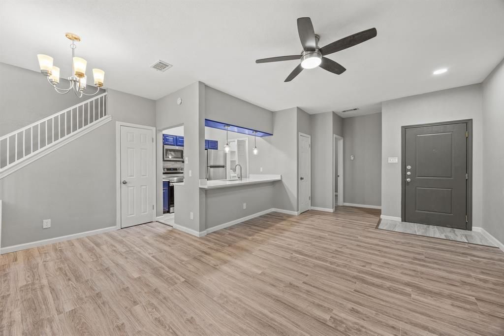 Modern comfort meets unbeatable location in this beautifully updated 3-bedroom, 2-story end-unit condo, nestled in the highly sought-after Lake Highlands neighborhood. Offering the perfect balance of style, space, and convenience, this home is truly move-in ready. Step inside to discover a freshly painted interior with modern finishes, an open-concept floor plan, and large windows that fill the space with natural light. The inviting living area features a cozy fireplace, creating a warm and welcoming atmosphere that flows seamlessly into the dining area and updated kitchen, complete with quartz countertops, stainless steel appliances, ample cabinet storage, and countertop space. Enjoy the convenience of in-unit laundry connections and new appliances for added peace of mind. The spacious primary bedroom is located on the first floor and features an updated en suite bath, while two additional bedrooms upstairs provide plenty of flexibility. Step out onto your private balcony and take in tranquil views of the lush greenbelt and nearby creek, offering a peaceful spot to relax with morning coffee. Located in a gated community with well-kept grounds, residents enjoy access to a refreshing community pool and a friendly, active neighborhood surrounded by mature trees. The prime Dallas location offers easy access to I-635, US-75, and Skillman St, plus proximity to White Rock Lake, Richland College, the TI campus, and countless shopping and dining options including Lake Highlands Town Center, NorthPark Center, and Greenville Avenue favorites. HOA includes water, sewer, and trash. A single-car garage adds convenience and extra storage. Combining modern updates, serene surroundings, and central accessibility, this Lake Highlands gem delivers the best of city living with a relaxed neighborhood feel.