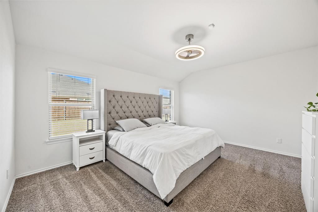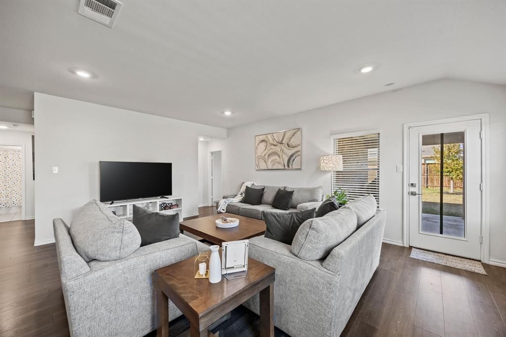 Set on an expansive, corner lot in the Sutton Fields North community, this home welcomes you with fresh curb appeal and a charming front entry that hints at the warmth inside. Step into an open-flow interior where the living, dining, and kitchen areas blend seamlessly, creating a warm and inviting focal point for everyday relaxing and easy entertaining. The modern kitchen offers custom cabinetry with an abundance of storage, generous prep space and a seamless connection to the main living areas, so conversations and cooking can flow together effortlessly. A spacious private suite with en-suite bath provides a restful retreat at the end of the day, and a dedicated office offers a quiet space for work or study, while additional well-proportioned bedrooms and baths provide flexible options for guests or hobbies. Outside, the sizeable backyard is ready for play, gardening or future outdoor living upgrades, giving you room to personalize your own private oasis. All of this is conveniently located in growing Aubrey with easy access to major routes, everyday conveniences, and area recreation. Thoughtful design, slab foundation and composition roof contribute to low-maintenance living, while central cooling helps keep the home comfortable year-round.