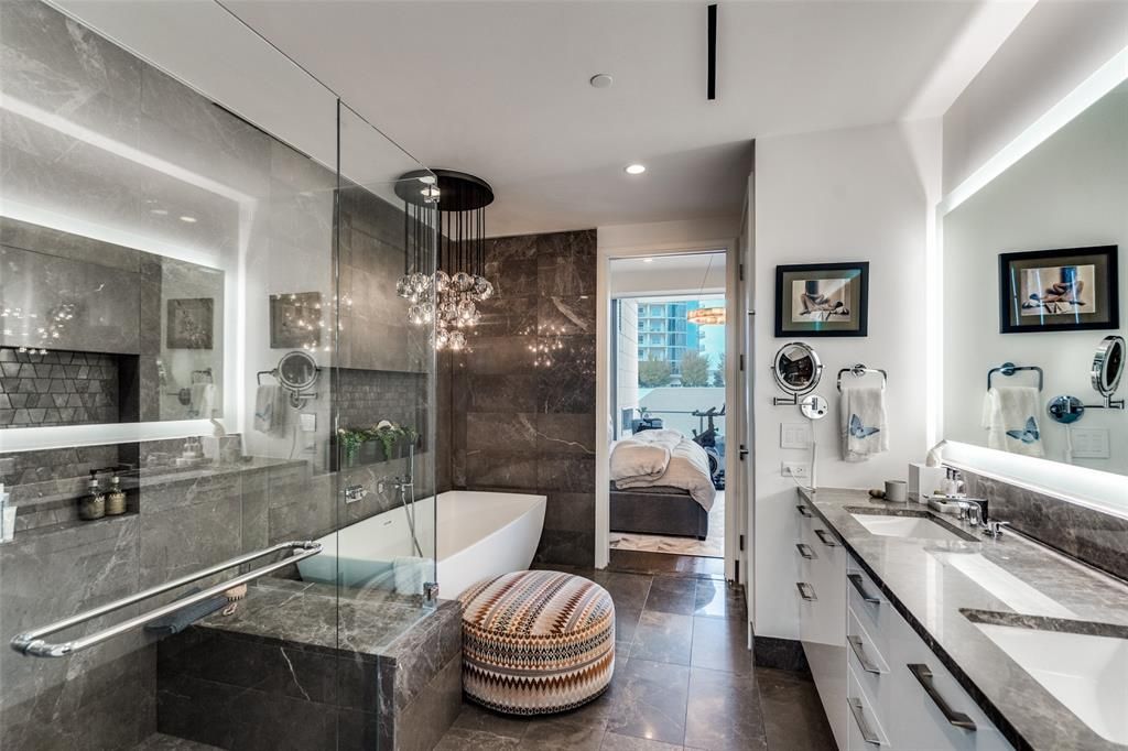 Live steps from the vibrant heart of Legacy West, where upscale dining, boutique shopping, and premier entertainment are all just outside your door. This coveted urban setting offers walkability, convenience, and a true lock-and-leave lifestyle"”perfect for those who want luxury living with immediate access to Plano's most dynamic district. This beautifully furnished 7th-floor residence in Windrose Tower showcases sought-after north-facing views and abundant natural light, enhanced by a collection of premium upgrades. The open-concept layout features a chef's kitchen equipped with Wolf appliances, a gas cooktop, convection oven, microwave, Asko dishwasher, built-in wine fridge, additional built-in drink fridge, and a dedicated ice maker. Custom cabinetry has been added to every closet"”including the pantry"”offering exceptional storage and organization throughout the home. The spacious living area flows seamlessly to an oversized balcony with a gas fireplace, perfect for enjoying quiet evenings or entertaining guests year-round. The serene primary suite features a spa-like bath with a smart toilet, soaking tub, oversized shower, dual vanities, and a fully customized walk-in closet. The second bedroom enjoys beautiful views and access to a full bath with dual vanities and a large shower. Two garage parking spaces and a storage unit are included. Windrose Tower elevates everyday living with five-star amenities, including a resort-style saltwater pool, outdoor spa, cabanas, grilling areas, putting green, state-of-the-art fitness center, virtual golf simulator, steam rooms, private esthetician, multiple lounges, library, activity lawn, concierge service, valet parking seven days a week, conference center, dog wash and pet lounge, mail room with coffee bar, and two hotel-style guest suites. This turnkey furnished rental offers an unmatched blend of luxury, convenience, and lifestyle"”right in the center of everything Legacy West has to offer.