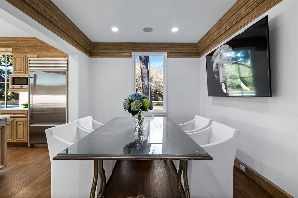 Rare find on one of Highland Park's most private and coveted streets. Elegant single story floor plan with upstairs quarters. Gorgeous details throughout include Versailles wood flooring in the entry and living areas, updated marble bathrooms and French doors leading from the living and dining room to the covered patio. Primary bathroom with double sinks, soaking tub and separate shower. With a convenient location near Teddy Bear Park at Lakeside, HP Village, Shops of Highland Park, this property offers both luxury and convenience.