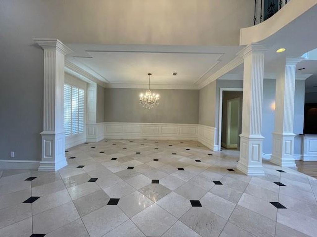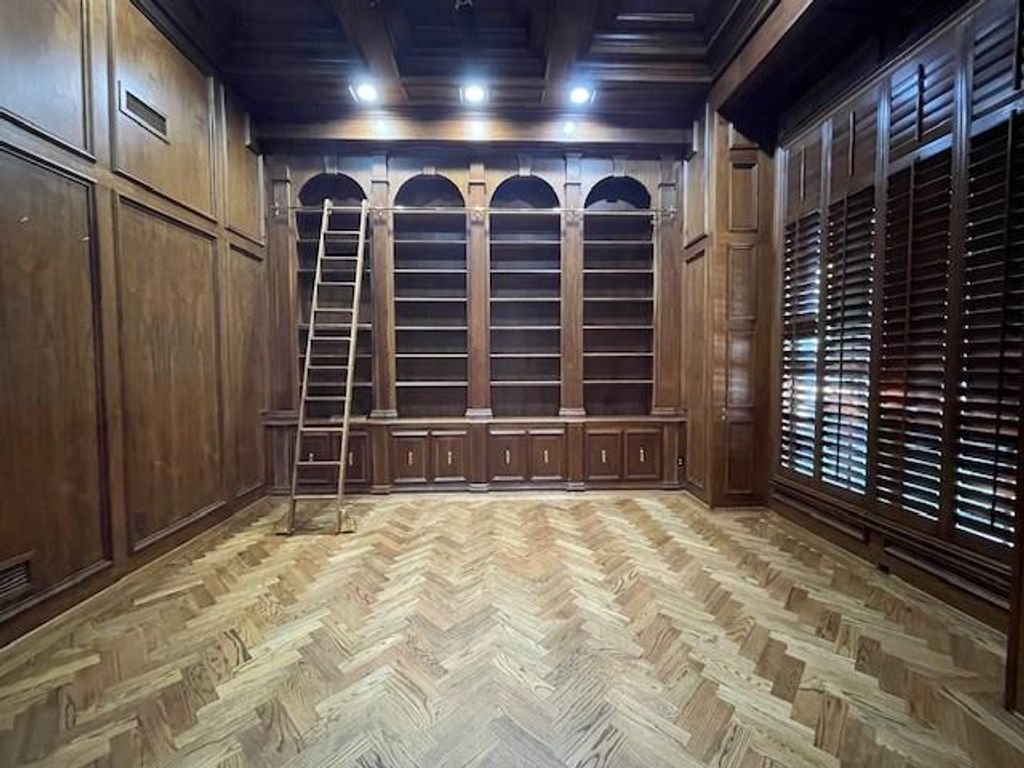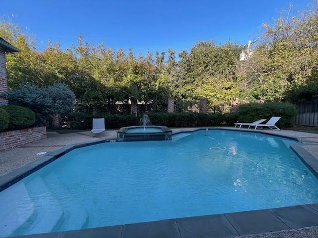 This stunning estate welcomes you with a grand two-story entrance and soaring tall windows that fill the home with natural light. Inside, you'll find five spacious bedrooms and four and a half bathrooms, including a luxurious downstairs primary suite with its own fireplace and dual closets, each featuring a cedar-lined section. The enormous chef's kitchen is outfitted with commercial-grade appliances, perfect for entertaining, while two expansive living areas with fireplaces provide warm gathering spaces. A large room offers the ideal setting for a private library or study, and three additional bedrooms upstairs ensure plenty of space for family or guests. Outdoors, enjoy a resort-style pool with a waterfall, a built-in grill for al fresco dining, and a three-car garage with ample storage. Perfectly situated near Saint Mark's School of Texas, this home is also close to premier restaurants, shopping, entertainment, and major freeways, combining elegance, comfort, and convenience in one remarkable property.