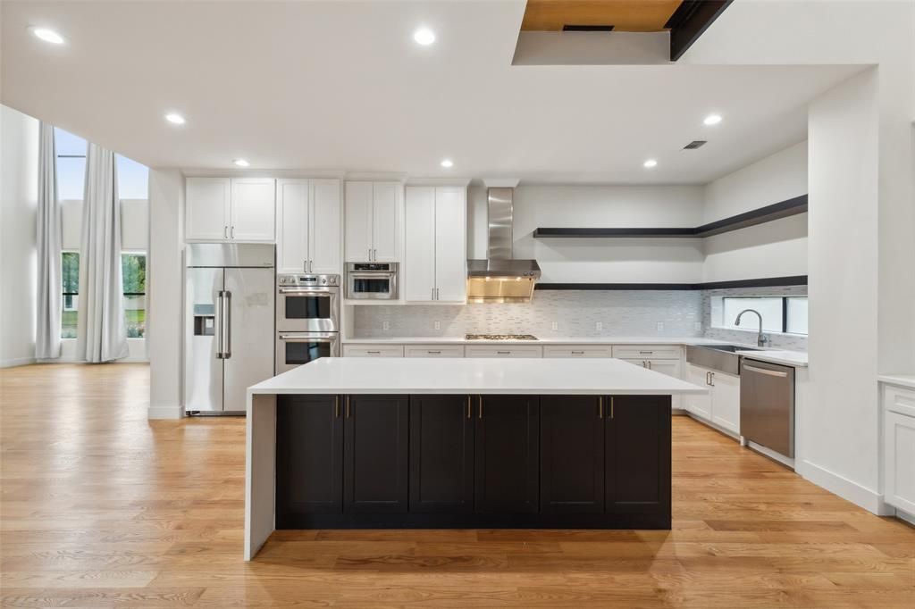 This breathtaking 6-bedroom, 6.5-bath Dallas home is a masterpiece of modern elegance, thoughtfully designed with luxurious touches and filled with natural light. From the moment you enter, you'll be captivated by the inviting atmosphere and sophisticated style. The open living room features a soaring ceiling and expansive windows that anchor the versatile floorplan, creating a bright and welcoming space at the heart of the home. The enviable chef's kitchen boasts a massive island, quartz countertops, built-in stainless steel appliances, and recessed lighting, providing ample prep space and functionality. The serene primary bedroom suite on the main floor is a private retreat, featuring a spa-like ensuite bath with dual sinks, a separate shower, and a spacious walk-in closet. Upstairs, find additional spacious bedrooms and bathrooms, along with a family room ideal for gatherings or relaxing. The downstairs guest bedroom with its own bath and large closet offers comfort and convenience for visitors. The cozy media room offers versatility and can easily be transformed into a home gym or creative space. Abundance of storage throughout! Outside, enjoy a private backyard with a large covered patio opens to Northaven Trail"”perfect for unwinding or entertaining. Additional upgrades include fence and semi-circle driveway. Situated in an excellent location near parks, shopping, dining, and entertainment, this stunning property invites you to experience Dallas living in style. Don't miss your chance to call this impressive home yours! 3D tour is available online.
