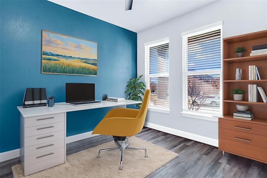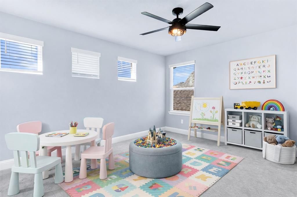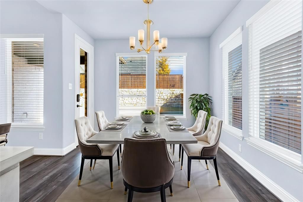 Upgrades throughout! This custom-designed home offers a refined blend of modern style, thoughtful upgrades, and a layout designed for both family living and entertaining. From the moment you step inside, soaring ceilings, sleek iron balusters, and an open, airy floor plan create an immediate sense of space and sophistication. The main level features hard-surface flooring throughout with no carpet, while upgraded carpeting adds comfort upstairs. The heart of the home is the stunning kitchen, anchored by a massive island, dramatic backsplash, and expansive counter space ideal for hosting, cooking, or casual gatherings. Clean lines and elevated finishes continue throughout the home, reflecting upgrades at every turn. The flexible floor plan includes four spacious bedrooms, three and a half bathrooms, a private study, and a large upstairs game room perfect for movie nights or relaxed entertaining. The primary suite, located on the main level, serves as a true retreat with spa-inspired finishes, an extended walk-in shower, distinctive hexagonal tile, and a custom-designed closet with smart storage solutions. Outdoor living is just as inviting, with a generous backyard featuring a covered patio and extended concrete pad ideal for entertaining or unwinding in the evening. The home sits on a quiet interior lot in a friendly, attentive neighborhood, just minutes from the lake where beautiful sunsets set the backdrop for everyday life. Residents enjoy outstanding community amenities, including a community center with game room, study rooms, fitness center, pool, event space, and a stocked fishing pond. With nearby trails, parks, outdoor recreation, local shops, dining, and a short drive to lakeside activities and the beach, this location balances tranquility with convenience. Zoned to award-winning Little Elm ISD, this home offers an exceptional lifestyle in a highly desirable setting. Call TODAY!
