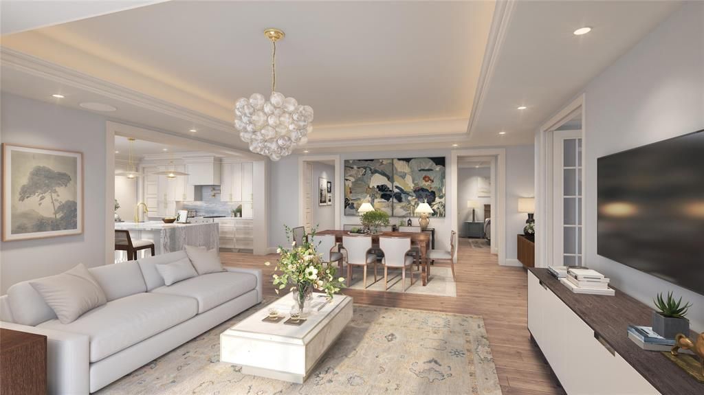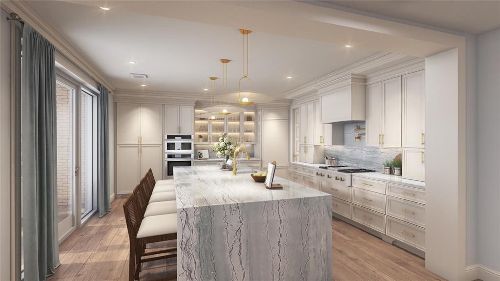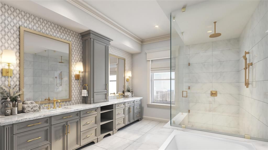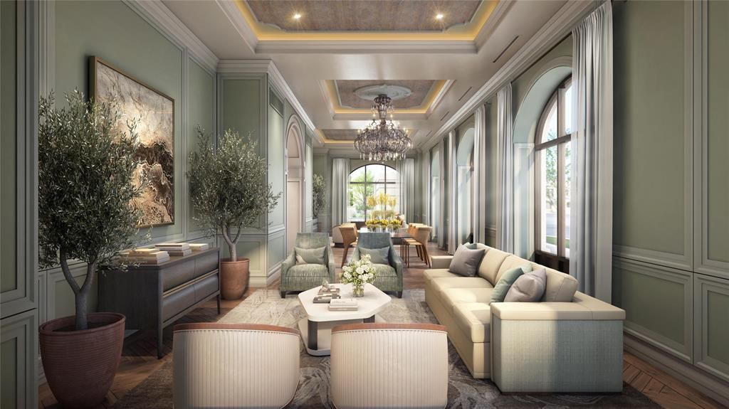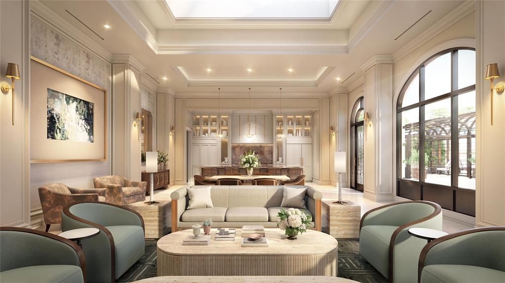 The Galatyn is situated next to Highland Park and University Park, one block from the Katy Trail, and within walking distance of Knox area with the Apple store, RH Rooftop Cafe, Toulouse, and Mister Charles; Highland Park Village with Dior for shopping and the New Dior Cafe, Chanel, Hermes, Cartier, Harry Winston; Honor Bar, Sadells's, Cafe Pacific, Fachini and MiCocina for dining. Residence 1 with its 3 bedrooms, 3.5 bath is 3,359sf of exquisite luxury living includes 2 finish schemes available with double volume living areas. There are custom home features such as a formal entry foyer, powder bath, open kitchen with waterfall island, Monogram Appliance Suite, with gas cooktop, Custom Cabinetry, built in 48in refrigerator, and wet bar with wine fridge. Just off the main kitchen is the private service kitchen containing a second refrigerator, ice maker, farm sink, and dishwasher, along with washer and dryer area. There is a second entrance for private chef, caterers and staff along with Concierge delivery of dry cleaning and packages when the residents are out of town. The primary suite is spacious with sitting area in bedroom, large primary bath with soaking tub and dual rainfall shower combination, separate vanities, and a large his and her custom closet. Luxurious stone vanities with custom sconce lighting, power shade system in all rooms, custom brass hardware, smart lighting control, secured keyless entry and nest thermostat, integrated Sonos speakers and amp, 10ft ceilings with cove lighting and much more.