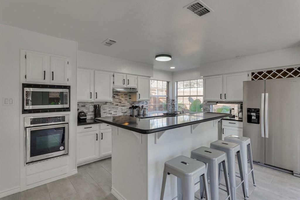 Fully Furnished & Updated - Available 03.01.26. Exceptional 5 bed, 2.5 bath home with a pool and spa, centrally located in Grand Prairie and only 18 minutes from Arlington's Entertainment District and AT&T Stadium, host of the 2026 FIFA World Cup! Thoughtfully renovated throughout, this home offers a refined blend of modern luxury, functional design, and everyday comfort. Upon entry, you are greeted by a bright, open-concept floor plan highlighted by soaring ceilings, abundant natural light, and a striking fireplace that anchors the main living area. The chef-inspired kitchen is both elegant and functional, featuring crisp white cabinetry, quartz countertops, stainless steel appliances, an expansive eat-in island, and a sunlit breakfast nook, ideal for both casual mornings and elevated entertaining. The primary suite serves as a private retreat, offering a spa-style bathroom complete with a soaking tub, oversized walk-in shower, and a generous walk-in closet. Four additional bedrooms share a beautifully updated full bathroom, providing flexible space for family, guests, or a home office. Luxury vinyl flooring flows throughout the home, complemented by designer tile finishes in all bathrooms. Step outside to a true backyard oasis designed for relaxation and entertaining. Lush landscaping frames a sparkling swimming pool, accompanied by a dedicated seating area and a covered pergola with built-in grill, creating an exceptional setting for gatherings, celebrations, and year-round enjoyment. Conveniently located near major highways, shopping, dining, and schools, this property offers effortless access to the best of the metroplex while maintaining a welcoming neighborhood feel. Both short-term and long-term lease options are available, and all furnishings shown in photos are included. Schedule your private showing today!