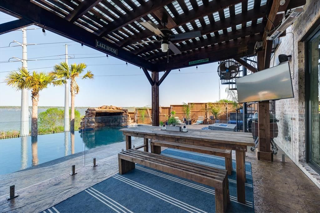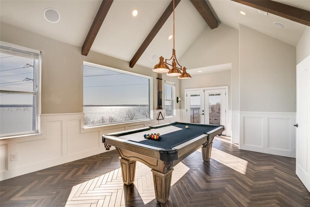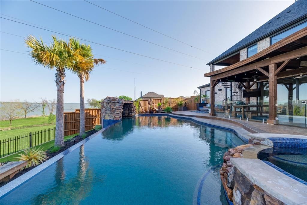 Stunning 4-bedroom 4-bathroom property with some of the most amazing lake views in DFW. Many upgrades throughout including wood flooring in living areas, custom cabinetry and millwork, SMART sound system with indoor and outdoor zones, high efficiency insulation. Backyard features an infinity edge pool with million-dollar views,outdoor kitchen, and an extended pergola. Downstairs features a stunning master suite and a spacious office. Upstairs features 3 spacious bedrooms. A gym (which could easily be used as another bedroom) and a huge game room round out this amazing property! Just a short commute to Downtown Dallas. A must see! Owner pays for pool and spa maintenance.