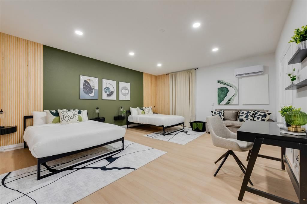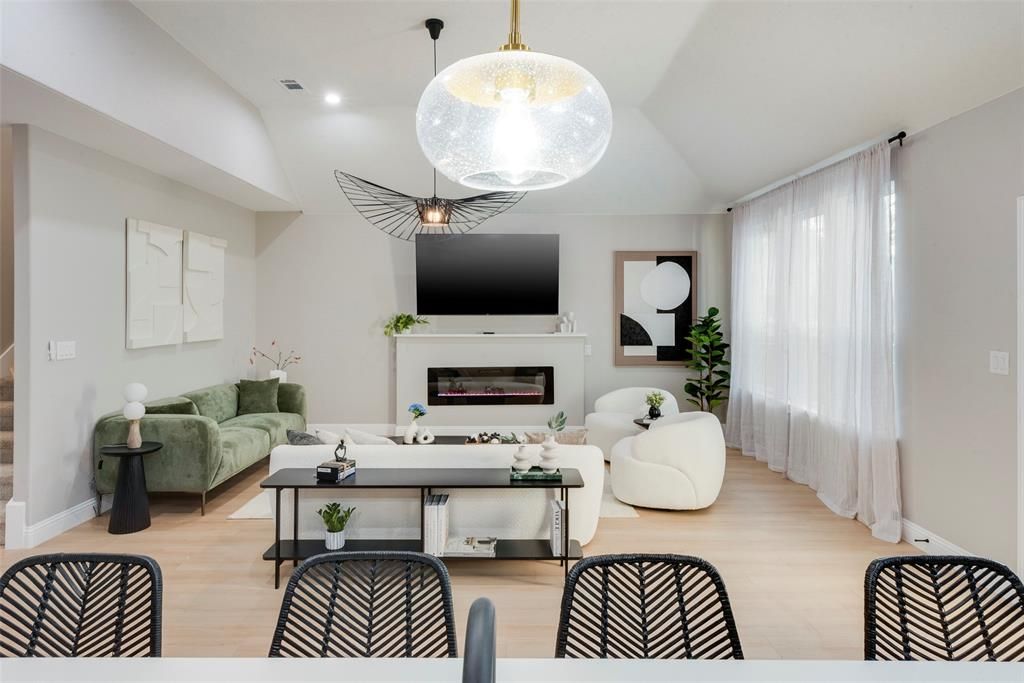 Fully furnished and truly one of a kind, this stunning home offers a breathtaking interior with a thoughtfully designed open floor plan that blends elegance, comfort, and functionality. The spacious living area is filled with abundant natural light and anchored by a cozy fireplace, creating a warm and inviting atmosphere that flows seamlessly into a beautifully appointed kitchen featuring a farmhouse sink, large center island, breakfast bar, pantry, and sleek stainless steel appliances. The primary suite serves as a private retreat, complete with a massive walk-in closet and a luxurious spa-like bathroom showcasing dual sinks, a jetted soaking tub, and a separate shower. All bedrooms are outfitted with hotel-line furniture, accessories, and linens, providing a true turnkey living experience, while the bathrooms throughout the home are equally impressive with modern finishes and refined details. With no carpet and no popcorn ceilings anywhere in the home, the space feels bright, airy, and thoroughly modern. Step outside to enjoy your own backyard oasis, highlighted by a gorgeous pool and jacuzzi"”perfect for relaxing or entertaining. This exceptional home offers the perfect balance of convenience and tranquility and is fully ready to welcome you.
