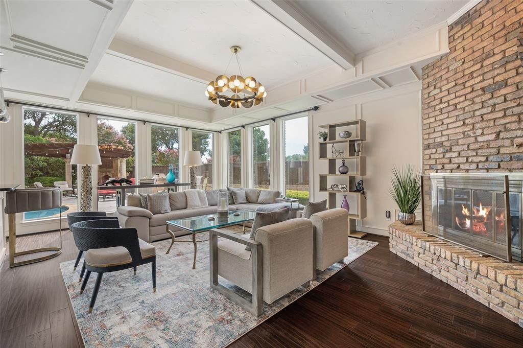 Delightful home with a gated circular driveway and only a short walk to Gleneagles Country Club! This home has wood floors throughout. Plenty of space to entertain with a game room and a beautiful backyard oasis! The formal living room, which could also serve as a study, features a fireplace. The den offers a wall of windows overlooking the beautiful backyard, fireplace, and built-ins. The gourmet kitchen is equipped with Stainless Steel appliances, double oven, microwave, 6-burner gas cooktop, dishwasher, and a walk-in pantry. The primary suite has a separate sitting area with a see-thru wood burning fireplace. The luxurious master bath features 2 vanities, 2 walk-in closets, a freestanding tub, and a separate shower. The sunroom features a walk-in wet bar with a fridge and a climate-controlled wine room. Upstairs there are four bedrooms two shared full baths, walk-in closets and bonus room that could be either living space or game room! Outside enjoy the wood burning fireplace in the pergola, the courtyard with separate private English garden, or the pool with waterfall feature and spa. Close to grocery stores, shops and restaurants. Glen Eagles Country Club is next door. You will also find the Tom Muehlenbeck Center, which is a community recreation center with indoor and outdoor pools, a weight room and gym, basketball, volleyball and badminton courts, and an indoor track. We are also near Windhaven Park which has practice fields, pavilions, and a playground. The Arbor Hills Nature Preserve is less than 10 minutes away, and it offers a 200-acre park featuring vast areas of natural beauty for walking, jogging, hiking, orienteering, and other outdoor activity. Community amenities feature parks, greenbelts, and neighborhood lakes Lawn and Pool maintenance for the home is included.