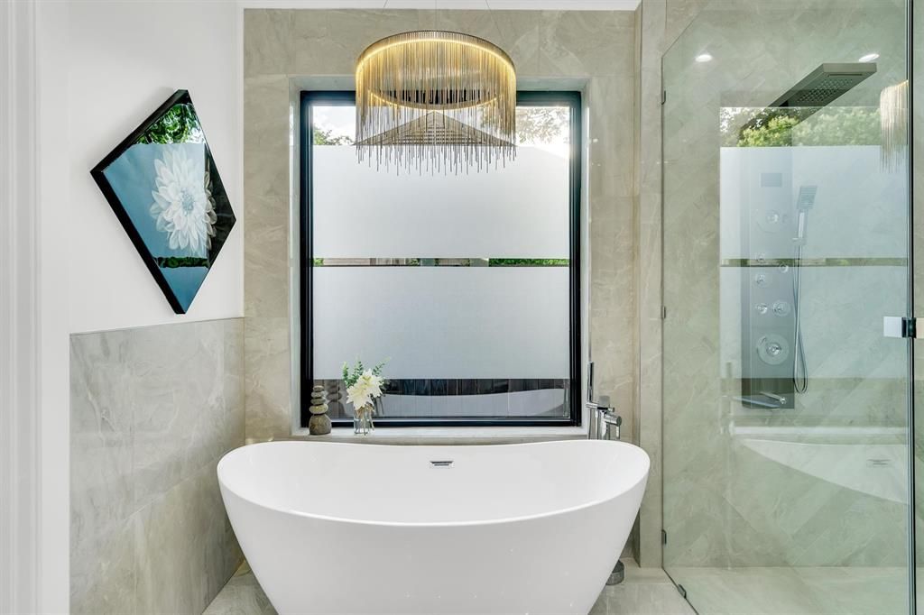 You Found It! Welcome Home! Step into the grand entry and be captivated by the smart floor plan that flows through the house. This stunning new construction home by BPVHOMES features 12-foot ceilings, creating an airy atmosphere. The family room, with a fireplace and cathedral ceilings, is perfect for relaxation and entertaining. The chef's kitchen boasts an oversized island, Jenn Air appliances, and soft-close cabinets, ideal for family meals and gatherings. The main level includes a luxurious owner's suite, a home office, a guest room with an en-suite bathroom, a mudroom, and a half bath. Upstairs, a game room with a wet bar, a media room, and three additional bedrooms with en-suite bathrooms offer entertainment and comfort. Step out onto the balcony to enjoy serene views. This energy-efficient home with Brazilian white oak floors offers elegance and modern living.