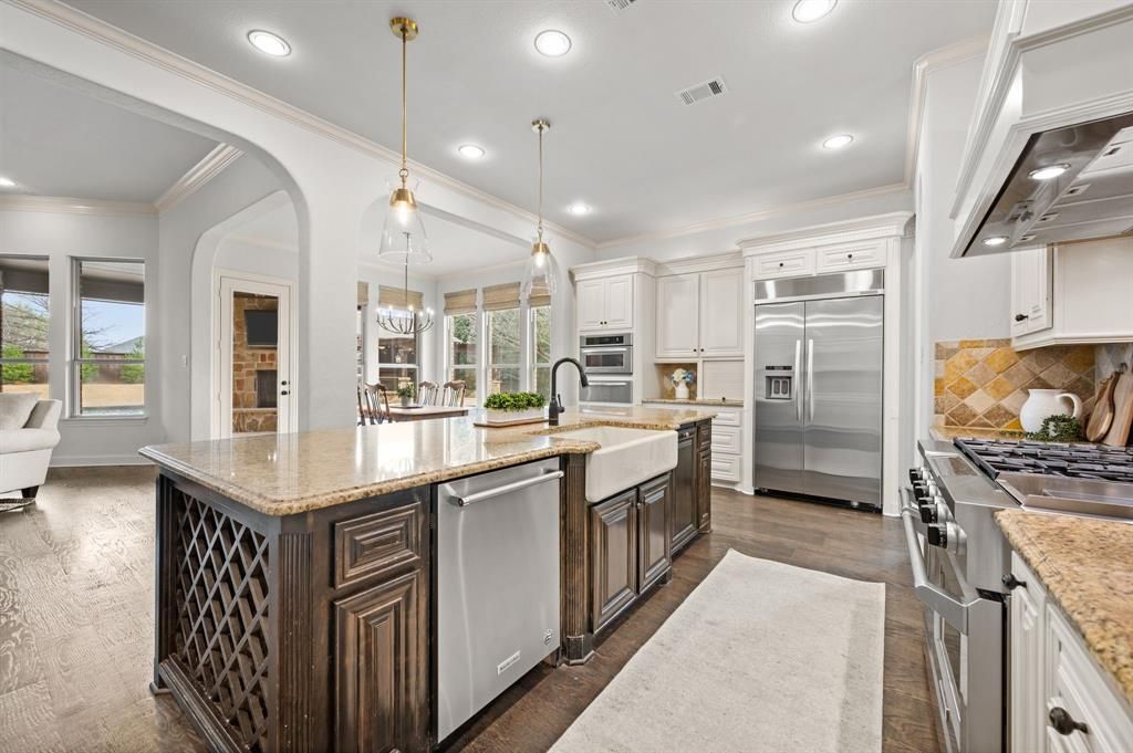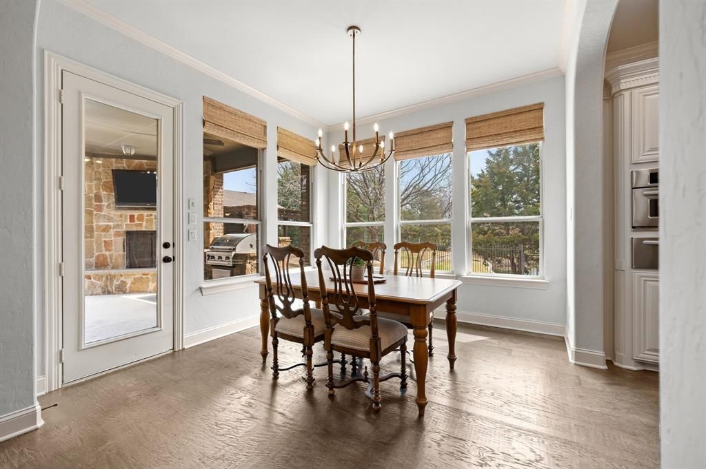 Situated on a premier corner lot next to a peaceful neighborhood pond, this beautifully appointed former model home in Colleyville offers the perfect blend of space, comfort, and convenience. Located within highly regarded Keller ISD, the home is just minutes from popular restaurants, shopping, and everyday amenities while still offering a quiet residential setting. The thoughtfully designed floorplan features six spacious bedrooms, including a private in-law suite ideal for guests or multi-generational living. The expansive kitchen serves as the heart of the home and showcases high-end appliances, abundant cabinetry, and generous counter space, opening seamlessly to the main living and dining areas for effortless entertaining. Step outside to your own backyard retreat featuring a sparkling pool and an impressive outdoor living space complete with a built-in kitchen"”perfect for hosting gatherings or relaxing with family and friends. The large backyard provides ample room for entertaining and enjoying outdoor living year-round. Additional highlights include a four-car garage, spacious living areas, and elevated finishes throughout that reflect the quality and design expected from a former model home. With its desirable corner lot location overlooking the pond, flexible six-bedroom layout, and exceptional indoor-outdoor living spaces, this Colleyville home offers a rare opportunity to enjoy comfortable luxury in one of the area's most sought-after communities.