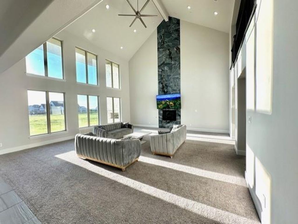 Step into luxury at this breathtaking one-acre estate in the heart of Lucas, Texas where refined elegance and modern sophistication come together in perfect harmony. Meticulously crafted with exceptional attention to detail, this residence offers grand living spaces, designer finishes, and a distinguished architectural design that stands the test of time. A breathtaking entry welcomes you with soaring cathedral ceilings, a dramatic dual staircase, and walls of windows that fill the home with natural light, creating an atmosphere of warmth and grandeur. The thoughtfully designed open layout flows effortlessly between formal and casual spaces, perfect for hosting elegant gatherings or enjoying everyday luxury. At the center of the home, the gourmet chef's kitchen impresses with premium stainless steel appliances, a built-in double-door refrigerator, double ovens, gas cooktop, and an expansive island designed for both entertaining and culinary excellence. A versatile, pre-wired media room offers endless possibilities as a private theater, game lounge, or additional bedroom suite. The serene primary retreat is a sanctuary of comfort, featuring a spa-inspired bath with a soaking tub, oversized walk-in shower, dual vanities, and a beautifully customized walk-in closet. Generously appointed secondary bedrooms include walk-in closets and adjoining baths, offering comfort and privacy for family and guests. Outdoors, a covered patio with a fireplace overlooks the sprawling backyard, creating a private setting for relaxation and memorable entertaining. Additional features include separate garages, a porte-cochère, and a picturesque neighborhood setting with a scenic circle drive perfect for evening strolls. Ideally located near premier shopping, dining, and entertainment in Allen, Wylie, Murphy, and Plano, and zoned to highly rated schools, this exceptional property offers a rare opportunity to enjoy luxury living with space, privacy, and convenience.