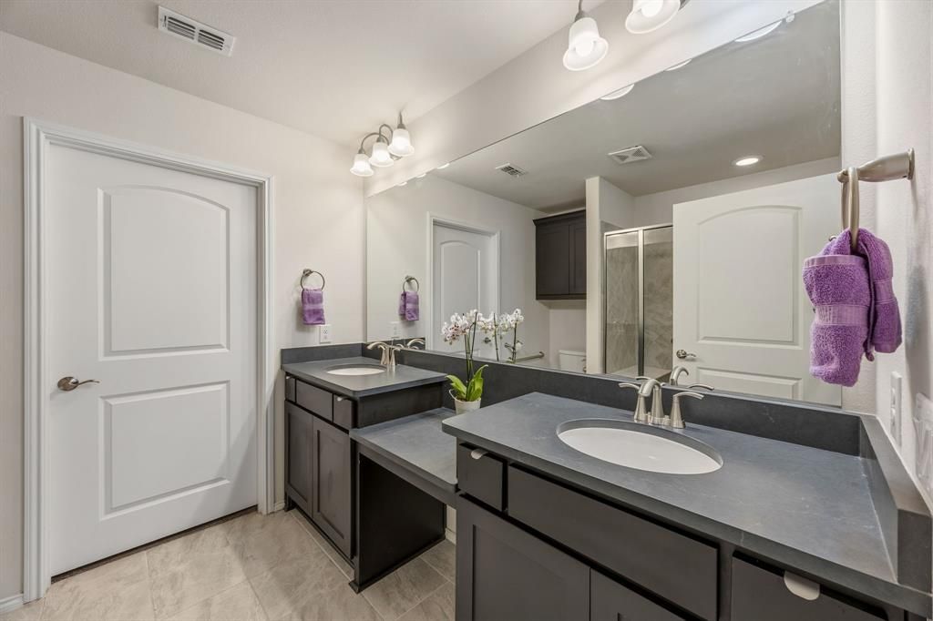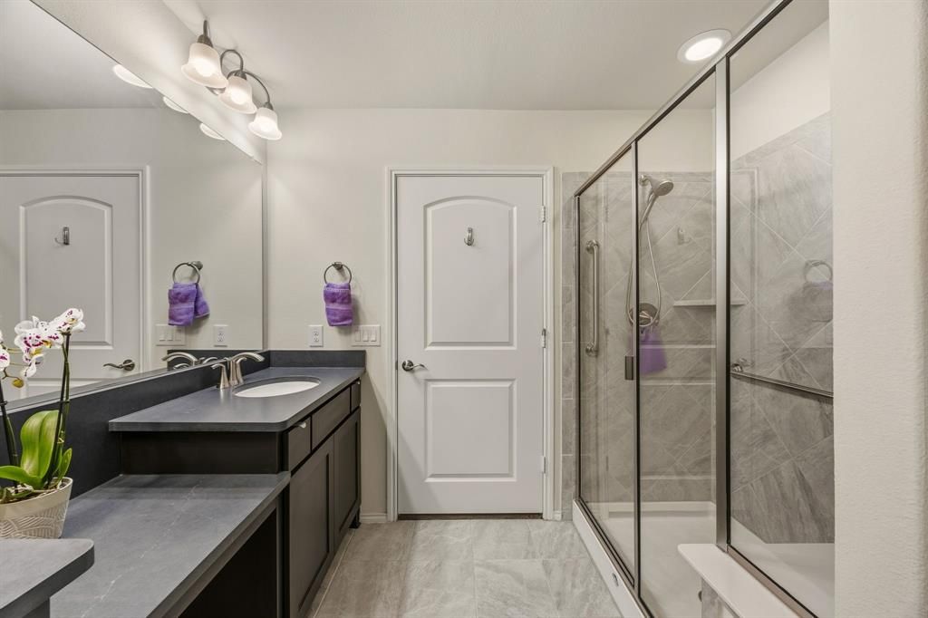 Set in Union Park, this home features classic brick and stone curb appeal with a welcoming front elevation and a layout designed for everyday comfort and easy entertaining. The open floor plan offers a spacious living area that connects seamlessly to the dining space and kitchen, where a large island serves as the natural hub for meals, conversation, and hosting. Large windows bring in abundant natural light, and updated lighting fixtures add a clean, modern touch. Smart home features including keyless entry provide added convenience. The primary suite offers a comfortable retreat with an en suite bath featuring dual vanities, a separate shower, and a walk-in closet. Practical upgrades include filtered water to the kitchen sink and refrigerator, plus paid in full solar panels for long term efficiency. A versatile bonus room provides the perfect space for a home office or additional living area, adding flexibility to the layout to suit your needs. Enjoy outdoor living from the large screened-in patio, ideal for relaxing or dining, while the spacious backyard backs to green space for an open backdrop and added privacy. An attached garage and concrete driveway add everyday ease for parking and access. The community offers lifestyle-focused amenities, including a central park, walking and biking trails, community gathering spaces like The Porch, pools, and outdoor hangout areas. Residents also enjoy a full community calendar with clubs, social groups, and organized events, along with a clubhouse, fitness facility, and recreation such as pickleball, tennis, and aqua activities. Convenient access to the Highway 380 corridor keeps shopping, dining, and commuting routes within easy reach. Schedule a showing to experience the comfort, natural light, and everyday convenience this home offers.