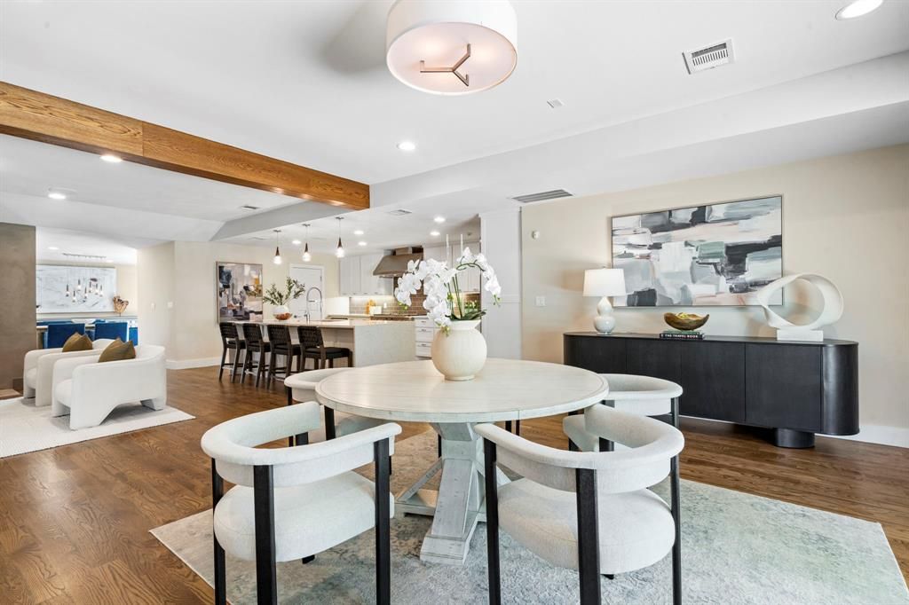 This beautifully reimagined and expanded one-and-a-half story home was taken to the studs and renovated in 2017. In 2025, the property was further enhanced with a brand-new roof and refinished hardwood floors. The main living space is anchored by a chef-inspired kitchen outfitted with quartz countertops, premium appliances, dual dishwashers, and an oversized island that opens to both a casual breakfast area and a generous living room. A gas fireplace, custom built-ins and a wooden beam add warmth and character. Adjacent to the main living area is a formal dining room with a sitting area and doors that slide open to a courtyard for seamless indoor-outdoor connection, perfect for entertaining. The floor plan offers multiple living areas on the main level as well as a game room and media room upstairs. The primary suite features spacious dimensions with a private bath that includes separate vanities, a soaking tub and separate oversized shower along with a spacious walk in closet. A dedicated office and three additional guest suites round out the first floor with two additional bedrooms and a shared bath upstairs. A private backyard features a separate courtyard with pergola and a built-in grill and entertaining area. Situated in desirable Melshire Estates which is the epicenter for many of Dallas' most coveted private schools as well as all the shopping and dining that the area has to offer. Close access to major travel arteries for an easy commute anywhere in the Metroplex. So much value in all of the square footage that this home has to offer. Owner prefers 1 year lease at $10,000 a month but will consider a shorter term lease of no less than 6 months at an increased rate of $12,500 a month. Pets considered on a case by case basis depending on breed and size.