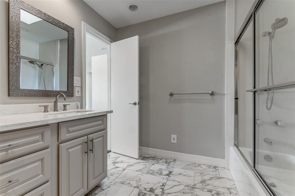 DO NOT MISS OUT on this amazing opportunity to live in a PRIME Preston Hollow location!!! This 3 bed, 3.5 bath duplex is light, bright, and tastefully updated with hardwood floors throughout. The open floor plan, smart home system, and two-story grass wall atrium are a few of its many key features. The beautifully updated kitchen boasts quartz countertops, SS appliances, and two full walls of cabinet storage. The oversized master suite with fireplace overlooks the back patio and has a fully remodeled bath with dual sinks, large shower, and walk-in closets. Upstairs features a second master and another generous sized bedroom, both with en-suite baths. Turfed backyard with fire pit and grill, perfect for entertaining! This home is one-to-see in an incredible PH location, walking distance to St. Marks School, Central Market, and the Preston Royal shops and restaurants!