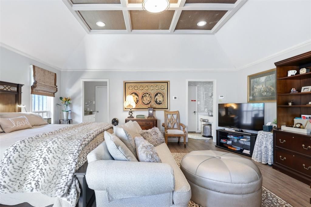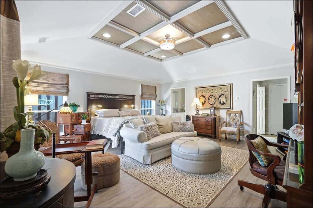 This elegant patio home features spacious, open formal living areas with soaring ceilings and a cozy fireplace, perfect for entertaining or everyday living. The updated kitchen boasts abundant counter space, wood floors, granite countertops, and a generous breakfast bar for casual dining. The primary suite offers high ceilings and private doors leading to the side patio, creating a seamless indoor-outdoor connection. The updated primary bathroom includes dual vanities, separate closets, and a skylight that fills the space with natural light. Outdoor amenities include a private side patio and access to an additional playground area, ideal for relaxation and recreation. A gated driveway ensures privacy and security, with extra parking available for additional vehicles. This meticulously maintained home is available as a fully furnished lease, combining comfort, style, and convenience in one complete package.