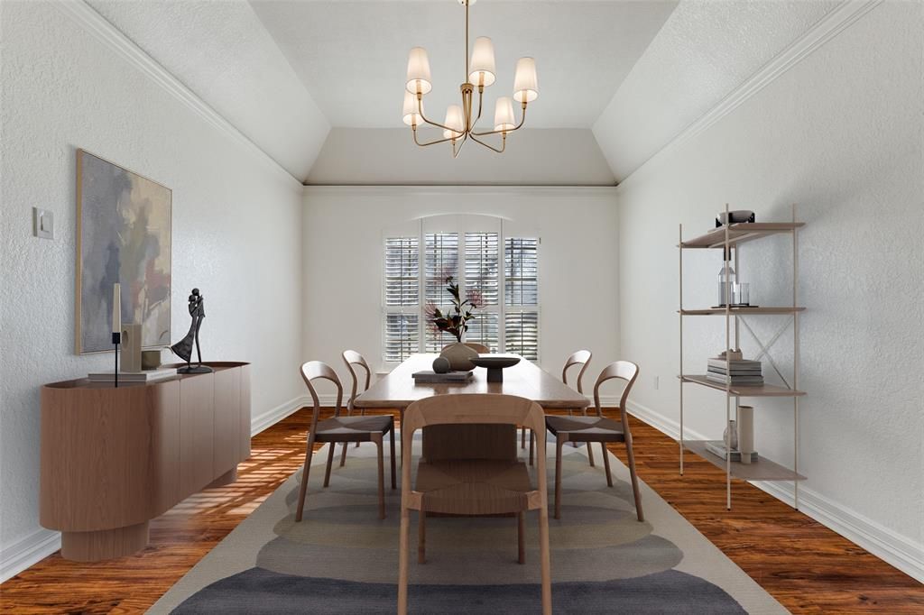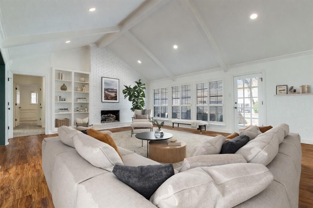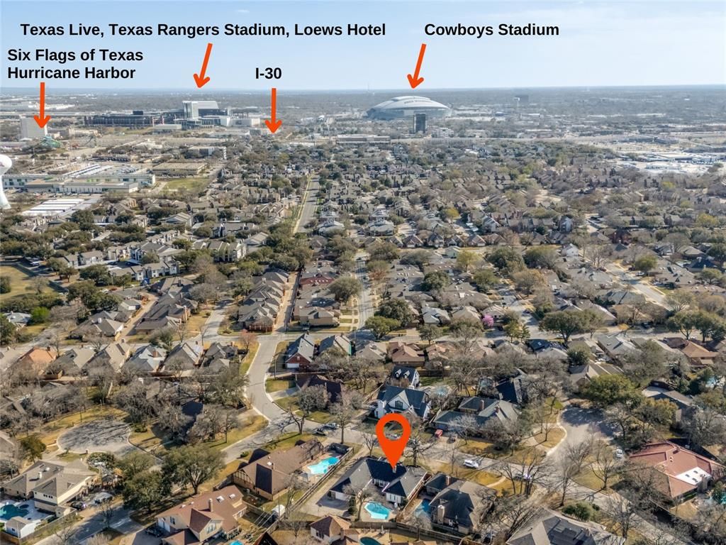 Full-scale renovation provides a modern, design-forward retreat in a beautifully established North Arlington neighborhood. Walk through the front door to be instantly greeted with drenched style & high-end features. Inside, ceilings were refinished to remove popcorn texture, followed by fresh interior paint throughout & updated hardware in matte black & champagne tones. Recessed lighting enhances the living room & expansive windows create perfect natural lighting. Hidden wet-bar with quartz countertops & custom design create a beautiful display & entertaining space. Formal dining room is bright, open & ideal for hosting. Updated kitchen features new stainless steel appliances, new fixtures, updated cabinetry, soft close doors & drawers, butlers pantry, coffee bar, & new bay window. Bathrooms were custom designed with new quartz countertops, new travertine flooring, champagne-toned hardware, updated cabinetry, & high-end tile. The primary bath features emerald green herringbone tile for a bold, on-trend design & new freestanding soaking tub positioned beneath a new cascading glass chandelier. New seamless glass shower enclosures for the separate shower create a dream primary bathroom. Exterior improvements include new 2026 roof, new bronze gutters, refreshed landscaping, updated sprinkler system, newly updated electrical panel, & contemporary lighting. Backyard centers around private swimming pool framed by mature trees. 4 bedrooms, 3 full bathrooms, & 2,869 square feet on 0.277-acre lot in Arlington 76011. Located approximately 0.8 miles to River Legacy Park & Trinity River trails, 2.5 miles to AT&T Stadium, 2.7 miles to Globe Life Field, 3 miles to Six Flags Over Texas, 4 miles to Texas Rangers Golf Course, & about 9 miles to DFW International Airport with convenient access to I-30 & SH 360. Includes video tour & floor plan viewer. Too much NEW to list - be sure to check out the Features List & schedule your tour today. Shows even better in person!