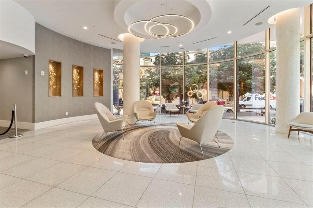 This well-known High-Rise is a striking landmark in Uptown Dallas, offering unparalleled luxury and breathtaking views. With its iconic architecture and sleek design, this high-rise residence delivers a sophisticated urban living experience. Located near Turtle Creek and Victory Park, residents enjoy easy access to the city's top restaurants, entertainment, and outdoor spaces. Thoroughly decadent in their square footage, this penthouse offers a spacious open bright living room with a built-in desk and designated dining space and a powder bath for your guests. The open-concept kitchen features Wolf appliances that unite with custom cabinetry, premium quartz countertops and floor-to-ceiling windows throughout the home. Take in breathtaking unobstructed city views from the top floor on your expansive glass enclosed balcony and watch the sunset while unwinding and relaxing. The oversized bedrooms both have large en-suite bathrooms featuring Lutron Smart Lighting Control Mirrors, Cesar Stone countertops, deep soaking tubs, & designer walk-in closets featuring Elfa customized shelving and lots of storage. The community features are unparalleled! Relax in the infinity-edge pool overlooking the city, gather with friends on the amenity deck with grilling stations, or enjoy the year-round rooftop sky deck with an inviting fireplace. Other noteworthy amenities include: 24h hour concierge, dry cleaning delivery & pick up, on-site maintenance & management, electric car charging stations, dog park & washing station, putting green, entertaining deck with fire pit, resident lounge & media room, & updated fitness center with brand new Synrgy360 System. This home includes 2 reserved parking spaces and complimentary storage options. Additional monthly fee on top of rent is $174 and that covers: Amenity Fee, 1GB 200MBPS Internet Package, Gas, Wi-Fi, Pest Control, Trash & Recycling & Utility Admin Fee.