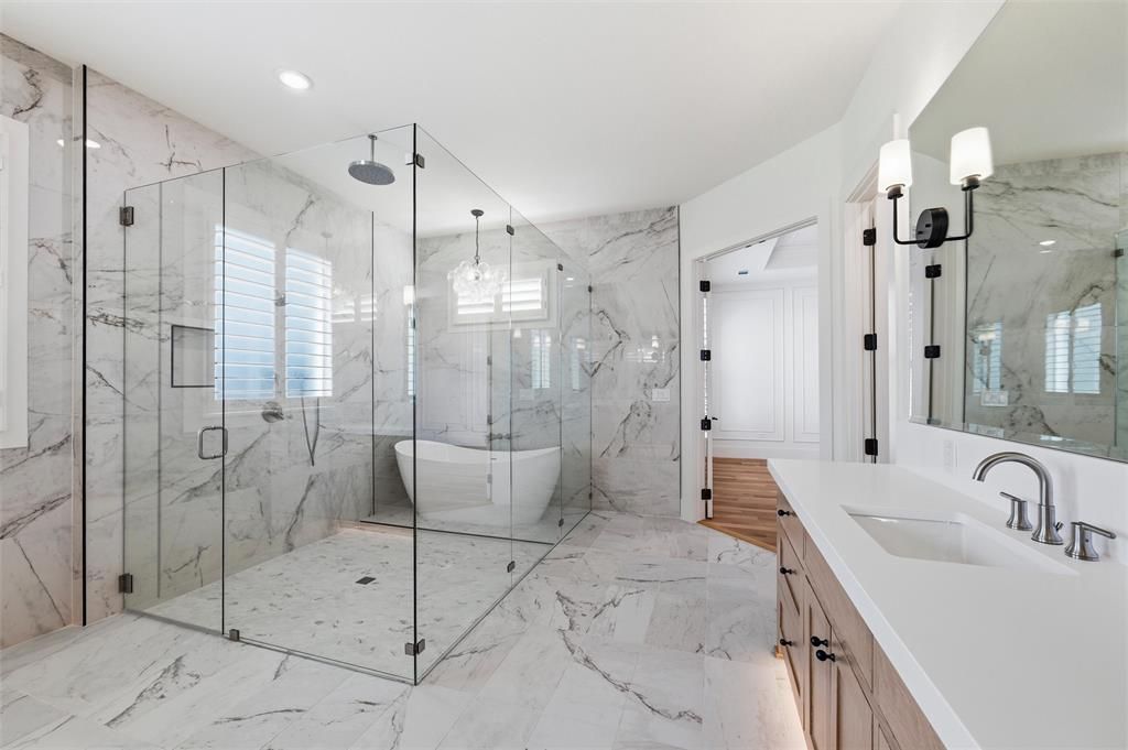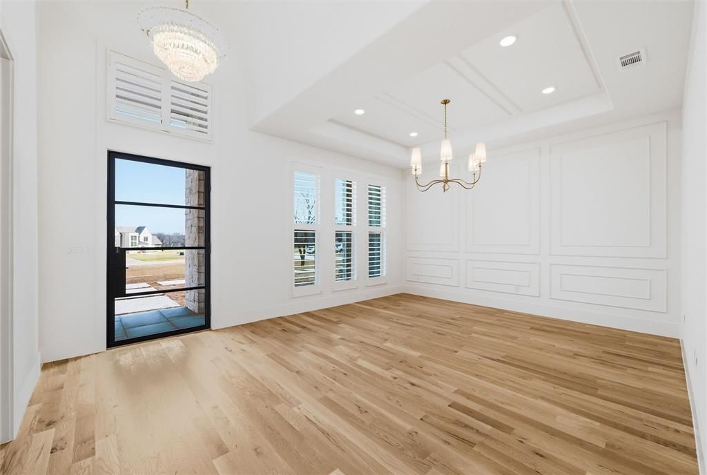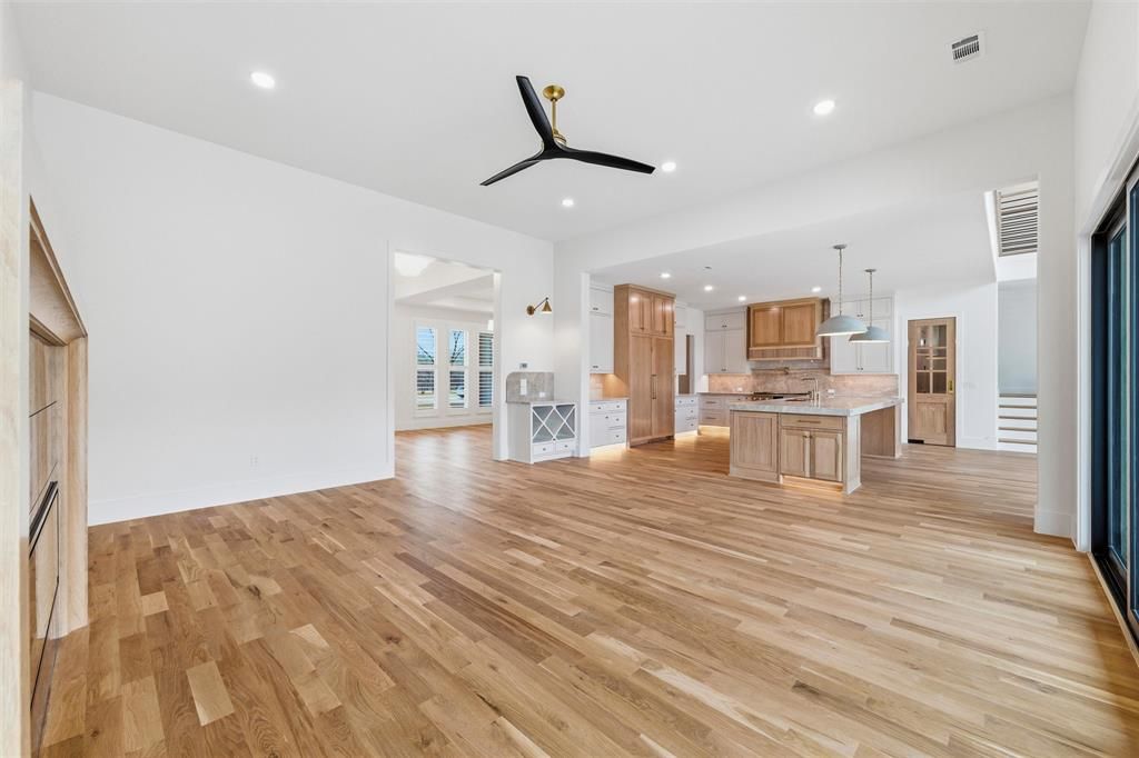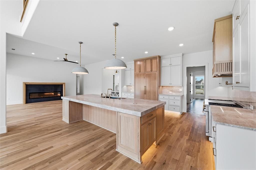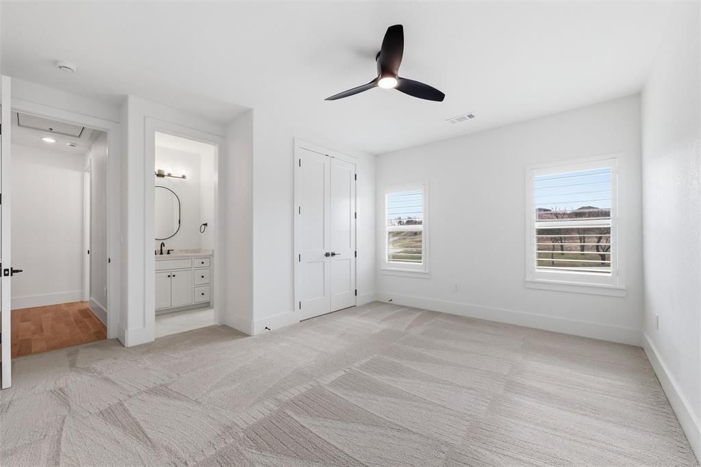 Located on 2.07 acres in the private gated community of Bear Creek Ranch and within highly acclaimed Aledo ISD, this exceptional custom residence offers acreage living just minutes from the Tiger Woods-designed Bluejack Ranch golf course and within 20 miles of Fort Worth's premier dining, shopping, and private schools. Built with exceptional craftsmanship and attention to detail, the thoughtfully designed floorplan features split lower-level bedroom suites, a private study, large upstairs game room, and versatile media or flex space down. The chef's kitchen showcases GE Monogram appliances, including a 48-inch dual-fuel professional range, built-in refrigerator and freezer, and a Ruvati workstation sink. A large island features pop-up outlets and charging stations, while the adjoining scullery or prep kitchen provides additional prep space and convenient garage access for easy unloading. Beautiful site-finished white oak flooring and custom white oak cabinetry, 8-foot solid core doors, elegant ceiling treatments, and abundant natural light create a warm and sophisticated interior. A well-designed mudroom and spacious laundry room feature classic checkerboard stone flooring. The primary suite offers a private retreat with patio access and a spa-inspired bath featuring a custom walk-in closet and striking wet room design with soaking tub inside a glass-enclosed shower. Outdoor living includes expansive paver patios, a site-built wood-burning fireplace, and plenty of room for a future pool and backyard oasis. Additional highlights include foam insulation, Zip System sheathing, post-tension foundation with concrete piers, water filtration system, epoxy garage flooring, underground propane tank, and a 27-zone sprinkler system. Enjoy the perfect blend of luxury, space, and community in one of Parker County's most desirable gated neighborhoods.