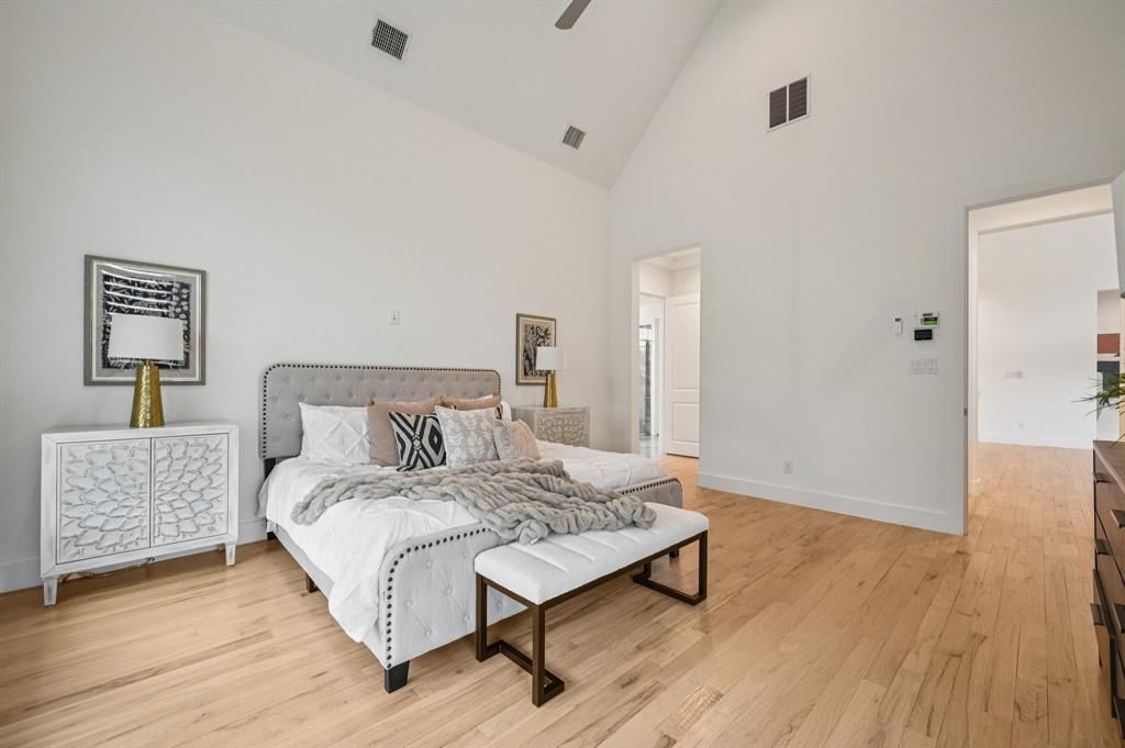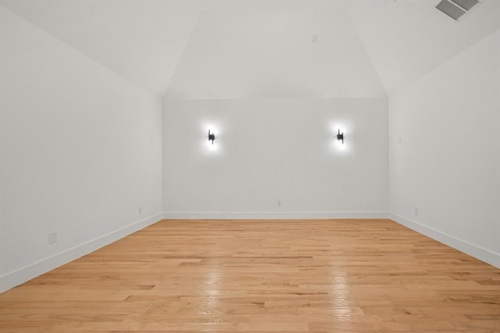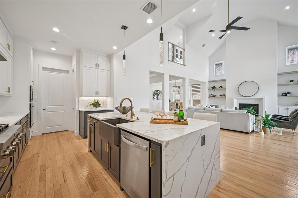 Landlord pays HOA dues. Located in the highly desirable Estates at Shaddock Park and zoned to Frisco ISD, this stunning 5-bedroom, 5.5-bath home with a 3-car garage offers luxury living with thoughtful design and upscale finishes throughout. The light-filled open floor plan features soaring ceilings and real red oak hardwood flooring across the main living areas. The chef's kitchen showcases a striking waterfall island, stainless steel appliances, gas cooktop with make-up air system, custom cabinetry with elegant gold hardware, and under-cabinet lighting, seamlessly flowing into the spacious living room highlighted by a Madrid cast stone fireplace with shiplap surround. An impressive 16-foot sliding glass door opens to the extended covered patio, complete with a 42-inch wood-burning fireplace, gas stub-out, and generous space for outdoor entertaining. The private primary suite offers a spa-inspired bath and serene retreat, while a guest suite on the main level is ideal for visitors or multi-generational living. Additional features include a dedicated office, large game and media rooms, en-suite bathrooms for all upstairs bedrooms, a well-equipped utility room with sink and cabinetry, and a 3-car garage with two EV charger outlets and extra storage. Residents enjoy access to resort-style amenities including walking trails, clubhouse, community pool, fitness center, dog park, playground, pavilion, and picnic areas.