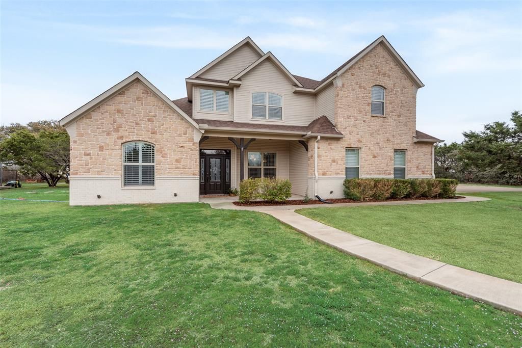 Experience the perfect blend of country privacy and modern convenience in this stunning Weatherford property. Situated on 2 level acres that are fully fenced, this property offers total security and peace of mind. From the curb appeal to the open-concept flow, this 5-bedroom, 3-bath home features beautiful details throughout, including a floor-to-ceiling rock fireplace, a wood staircase, and expansive windows with traditional shutters. Inside, you'll find an extra-large gourmet kitchen, featuring an oversized island with quartz countertops, and abundant cabinetry. The versatile layout includes two oversized bedrooms large enough to serve as dual-purpose flex rooms, alongside a dedicated home office and a formal dining room. The features continue outside with a massive 40x30 insulated shop featuring two overhead doors and two carports, each equipped with RV hookups. Your private backyard oasis awaits with a large sparkling saltwater pool and a spacious patio surrounded by mature trees. Embrace modern country living at its finest, located only minutes from downtown Weatherford's shopping and dining.