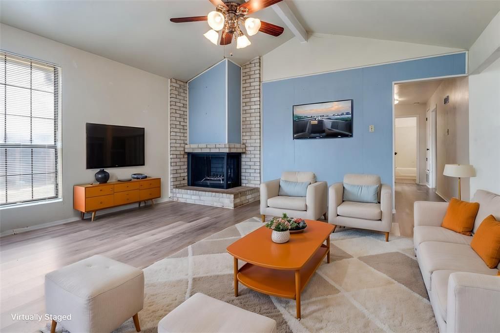 Located on a large corner lot, this 3-bedroom, 2-bath home offers a functional layout with two separate living areas, providing flexibility for everyday living, a home office, playroom, or second den. The bedrooms feature brand new carpet, adding a fresh update, and the 2-car garage plus a separate driveway provides ample parking and storage. The living room boasts a vaulted ceiling and fireplace. Conveniently located near a neighborhood elementary school and close to everyday amenities, this home offers space, comfort, and a great opportunity to make it your own.