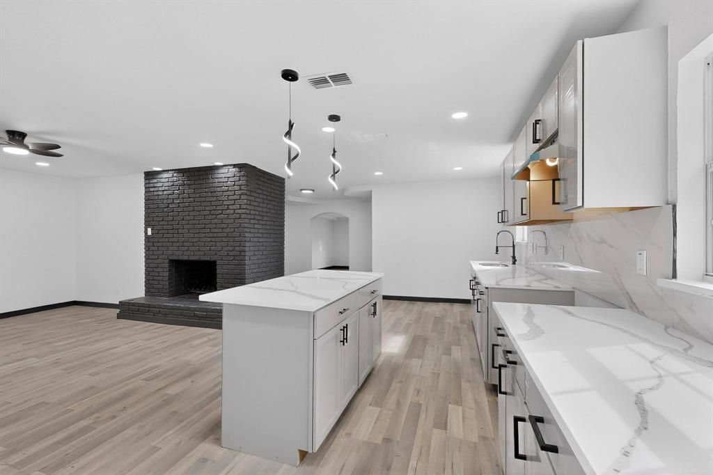 Step into this beautifully remodeled home, thoughtfully updated with a modern design and high-quality finishes throughout. From the moment you arrive, you'll notice the fresh exterior, inviting covered front entry, and attractive curb appeal. Inside, the home features two spacious living rooms, each filled with natural light and contemporary touches. The main living room includes an electric fireplace, creating a cozy and stylish focal point. The kitchen serves as the heart of the home, featuring quartz countertops, a spacious center island, custom gray cabinetry. The open layout is ideal for both entertaining and everyday living. This home offers generously sized bedrooms and fully updated bathrooms. Recent improvements include:New flooring throughout the home, Modern lighting and fixtures, Fresh interior and exterior paint. Move-in ready and blending modern style with comfortable living, this home is perfect for anyone seeking a turnkey experience. Schedule your private showing today!